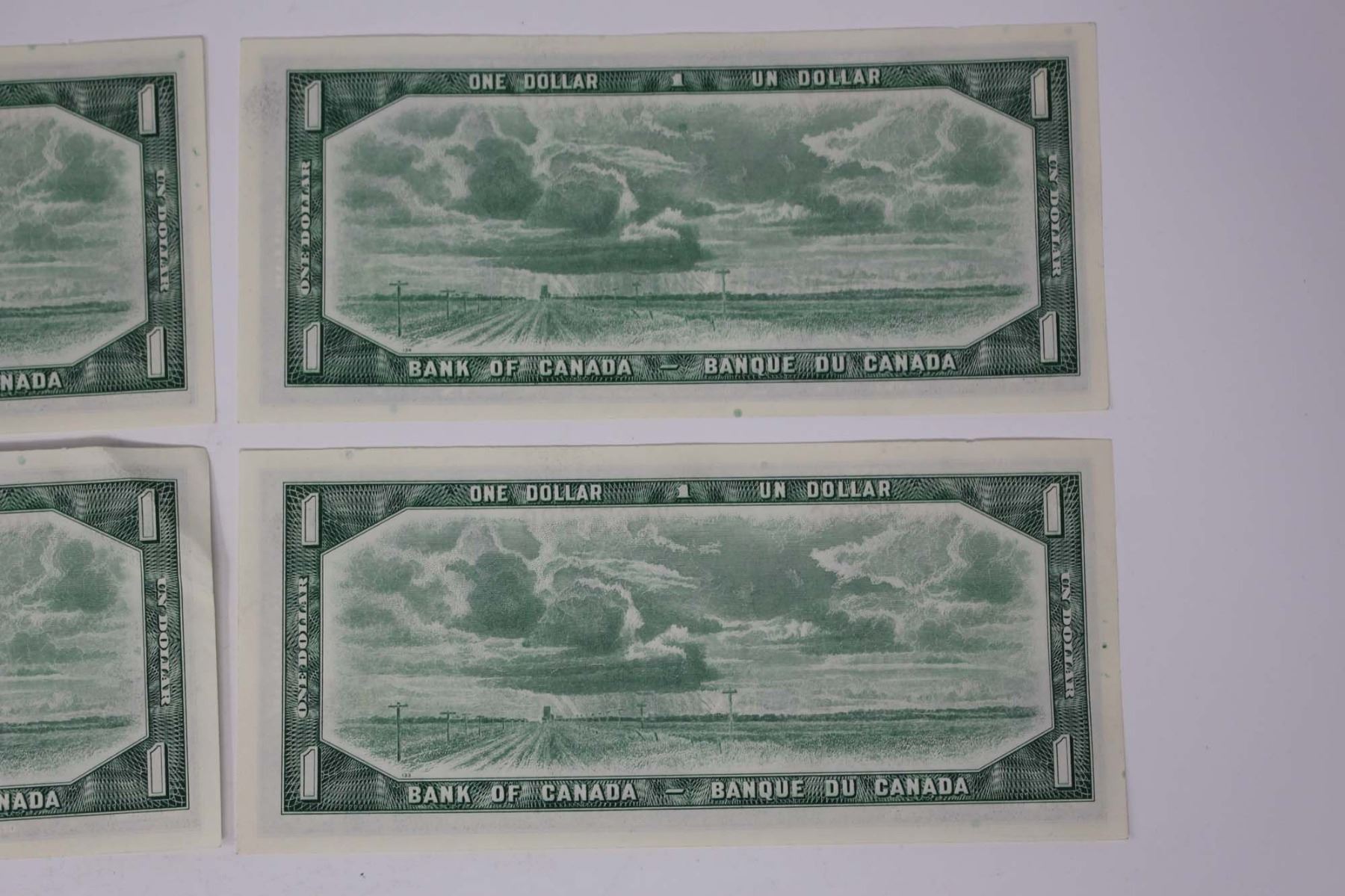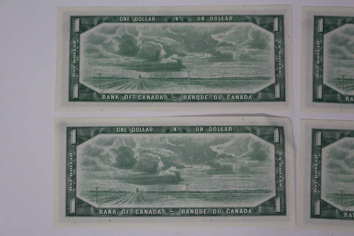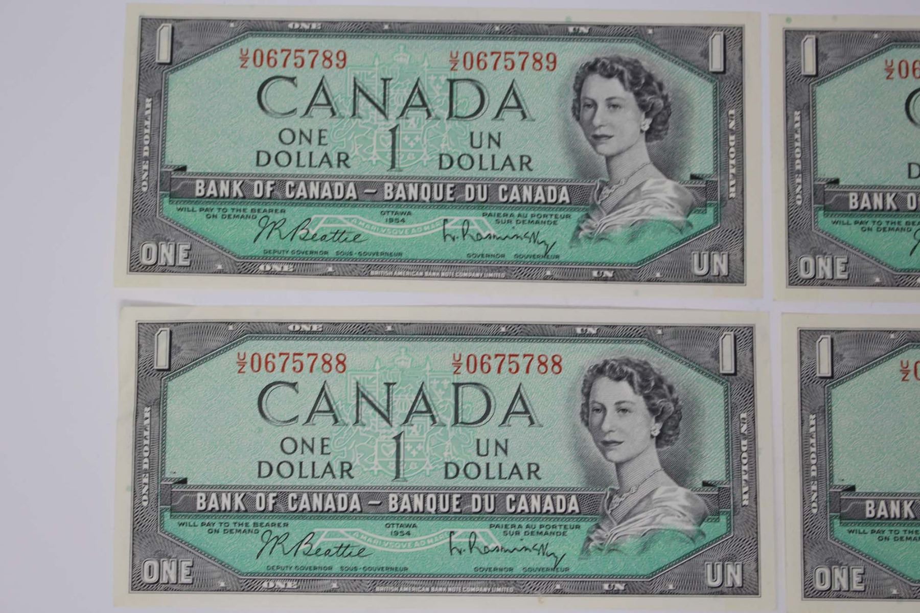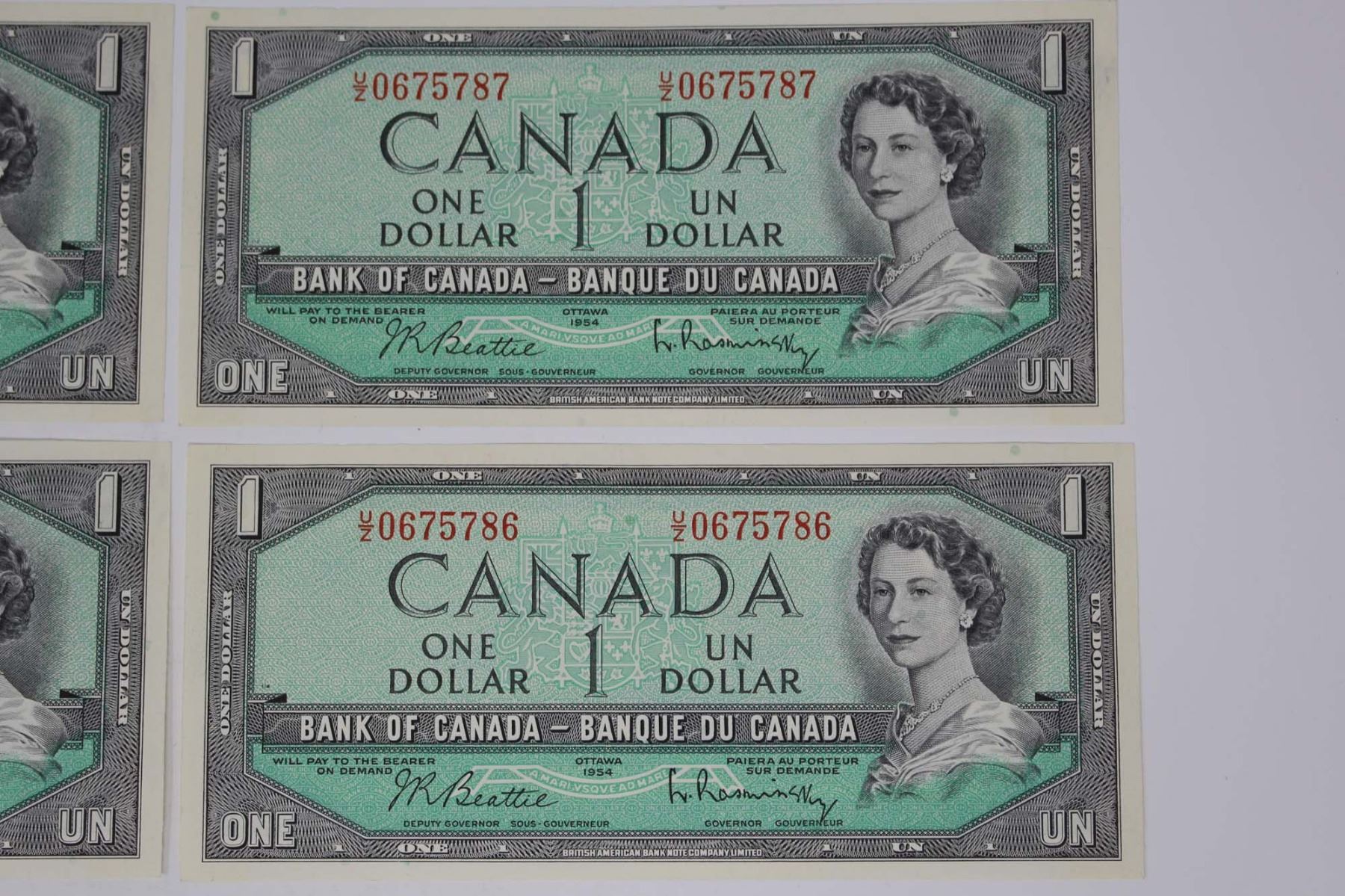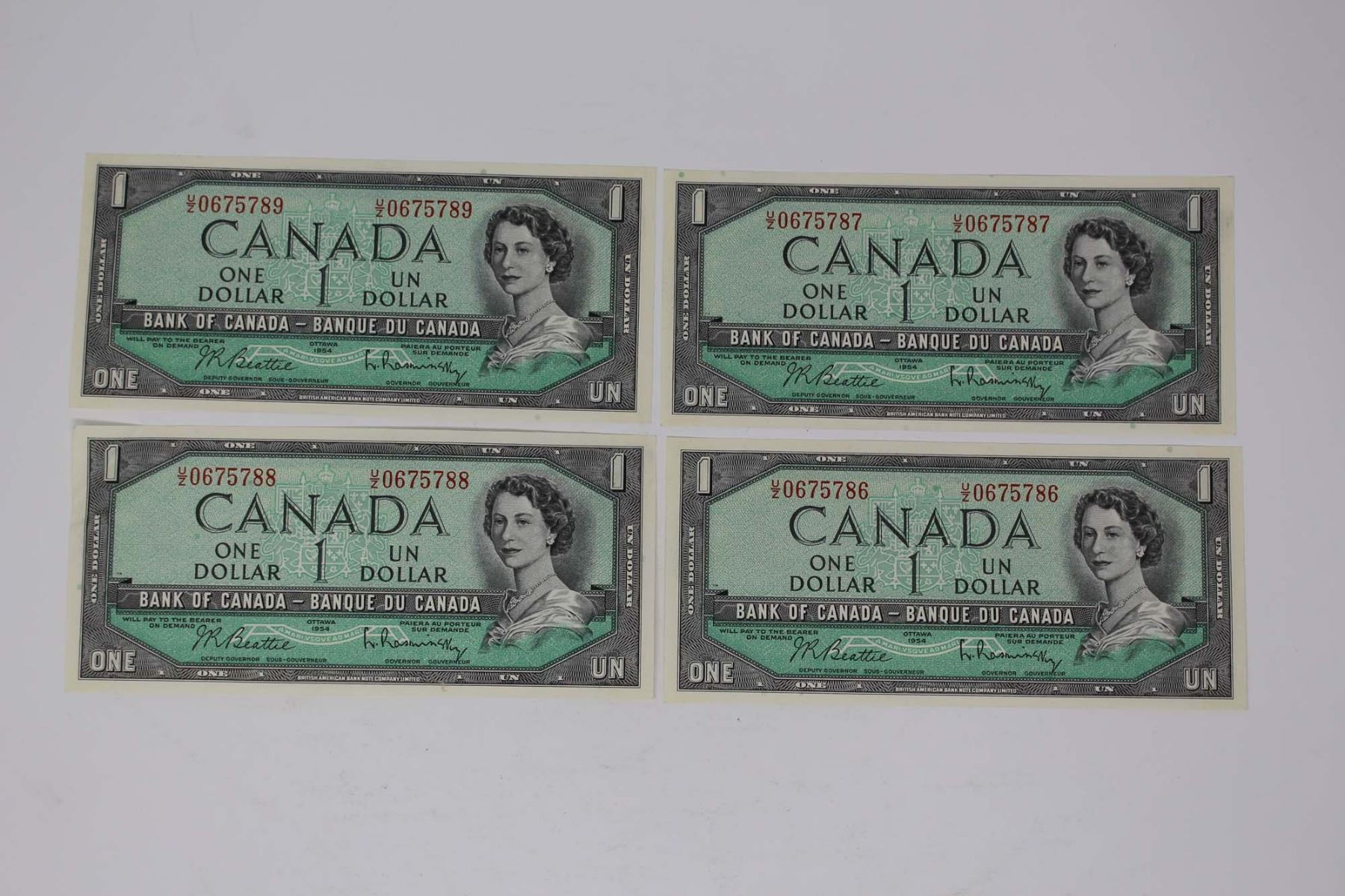 Set of 4 Sequential 1954 Canadian 1 Dollar Bank Notes