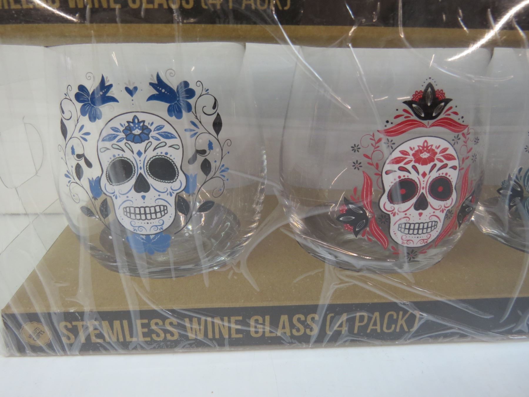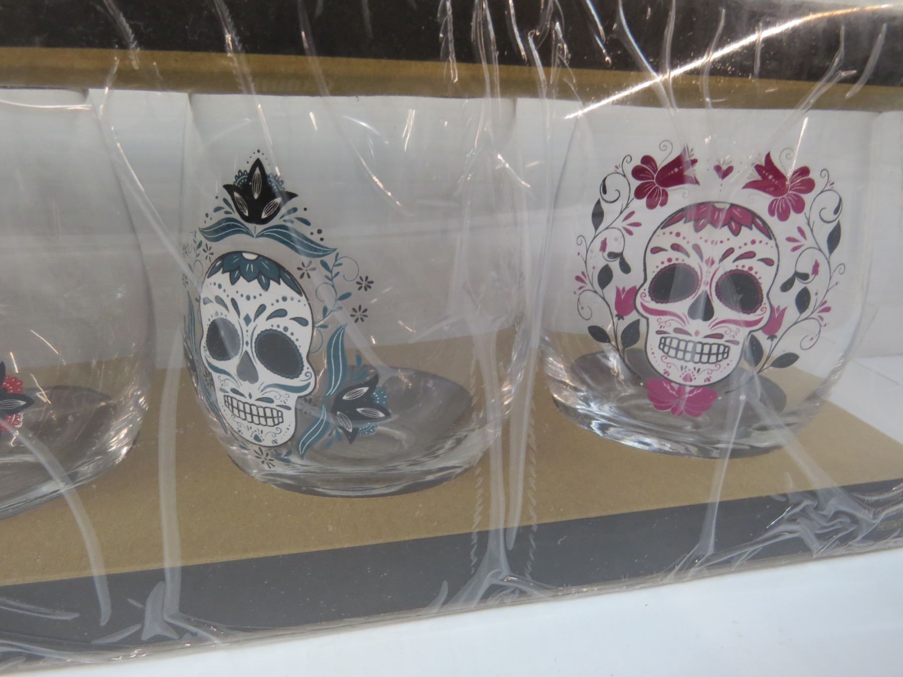 Set of 4 Skull Glasses (NIB)