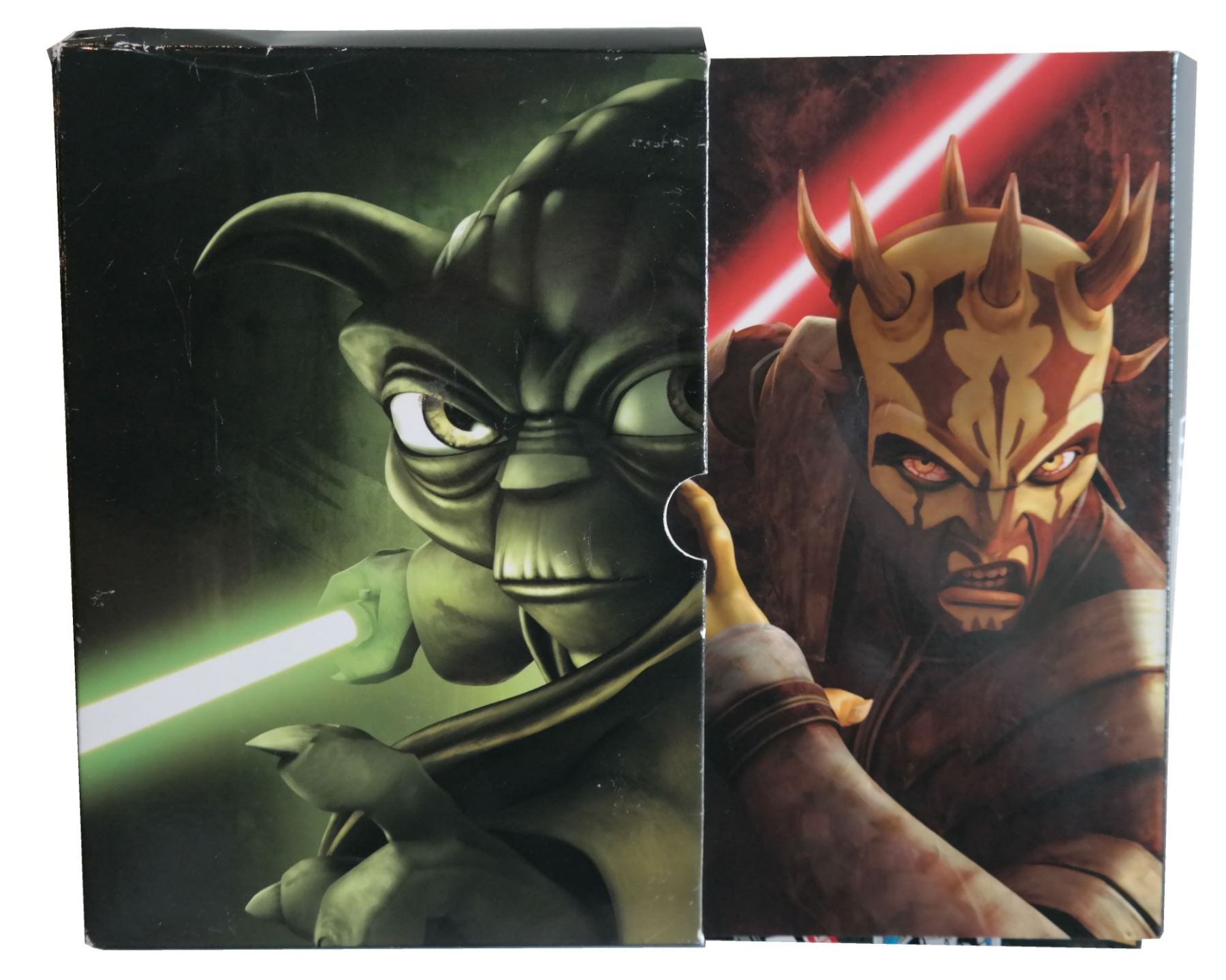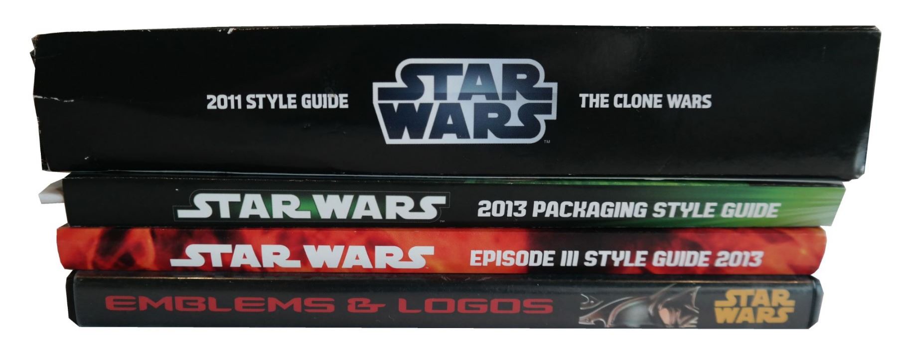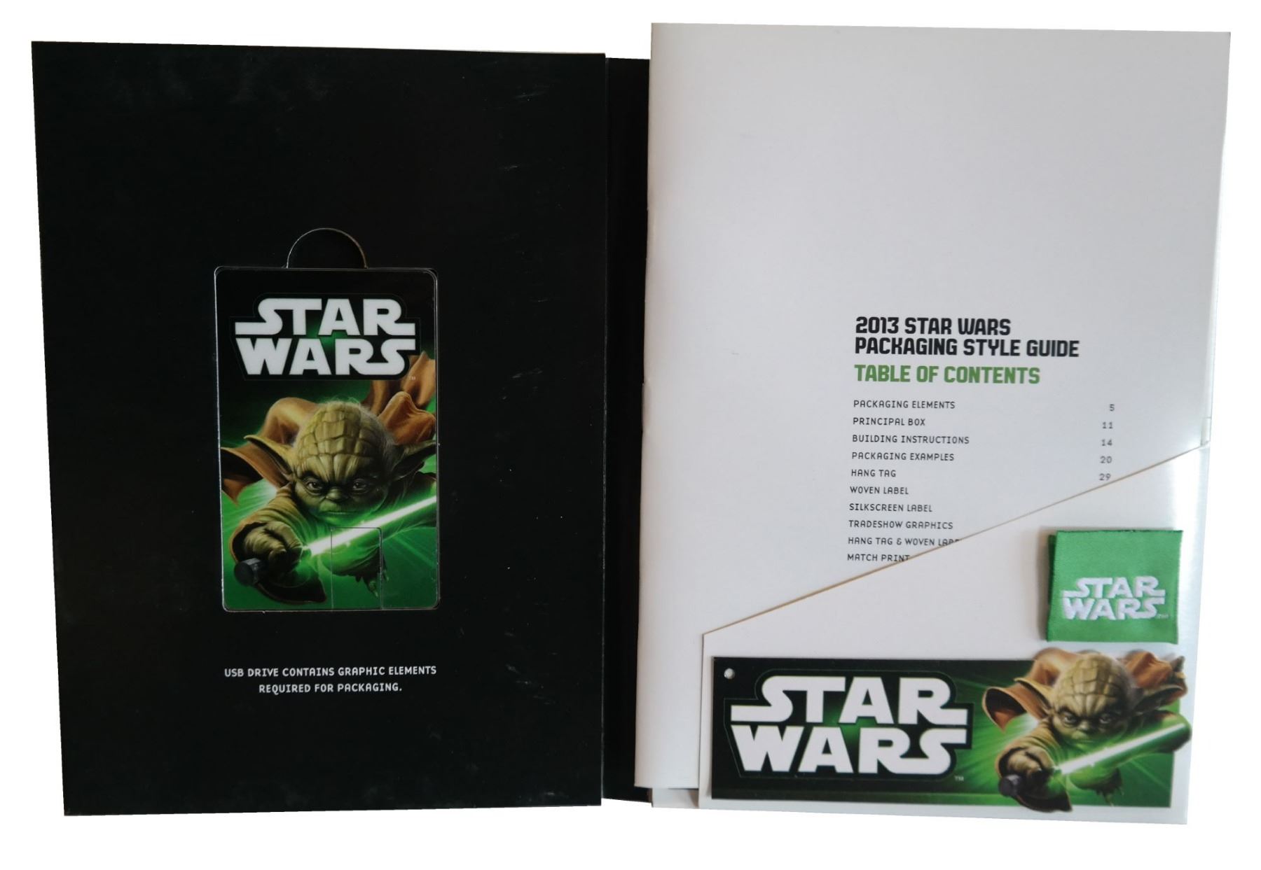 (LucasFilm, 2004-2013) A very rare set of (4) "Style Guide" packets from the "Star Wars" series. These "Style Guides" contain designs of characters, logos, fonts, artwork, and much more that could be used in the creation of merchandising and promotional materials. The set includes a 2004 "Revenge of the Sith" 2-disc case, a 2011 "The Clone Wars" 9-disc case, a 2013 case with a chip inside containing the materials, and a 2013 "Episode III" case with a chip inside. Each of the style guides appear to be in very good condition with some creasing and minor wear to the packaging, but overall functionality for the discs or chips has not been tested. The style guides come in standard DVD sized cases.