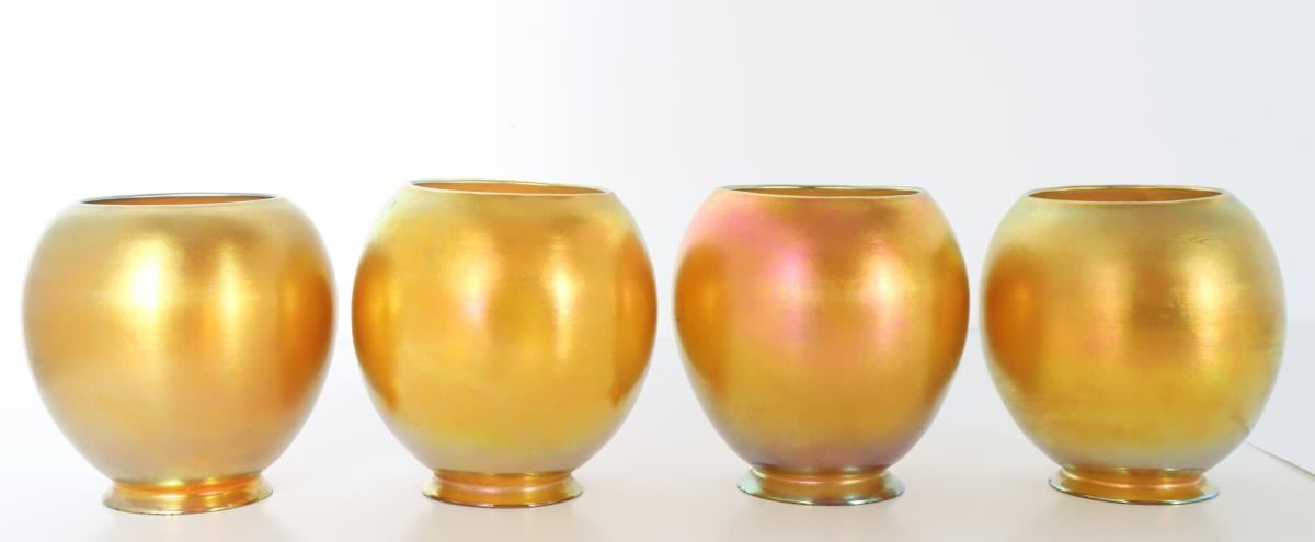 Set of (4) Steuben Gold Iridescent Shades, Aurone. 4 1/2 x 4 1/2 x 4