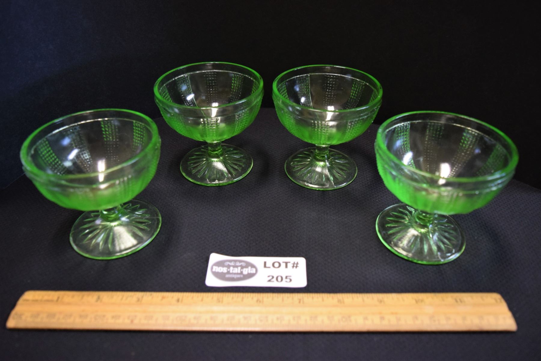 Set of 4 Vintage Green Uranium Depression Glass Ribbed Parfait Glasses