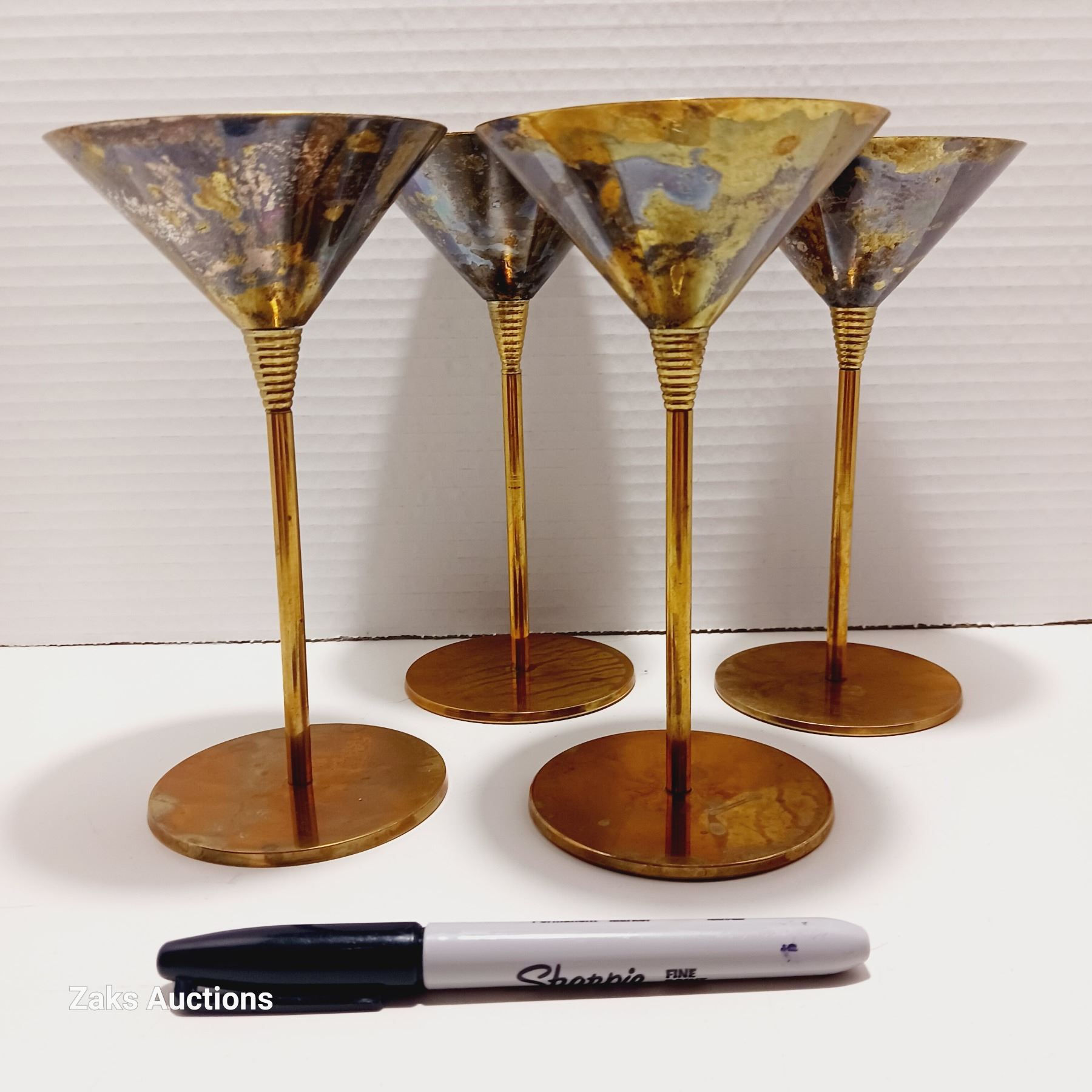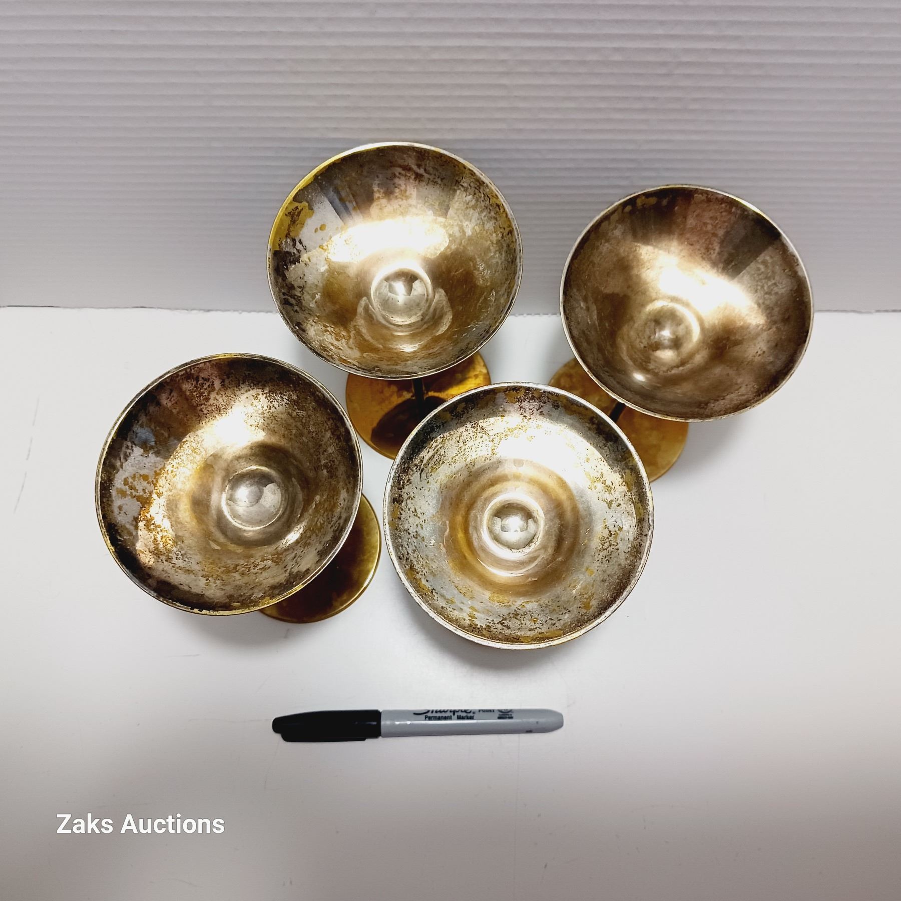 Set of 4 Vintage Mid 20th Century Brass Goblets, Made in India