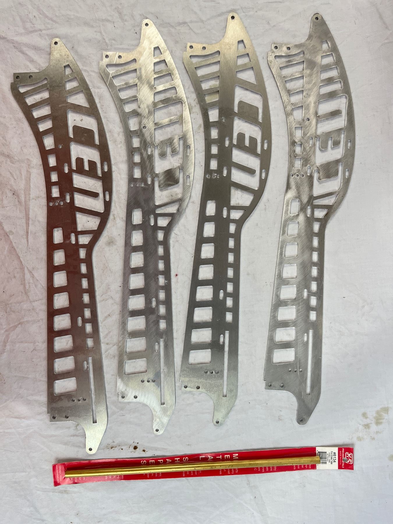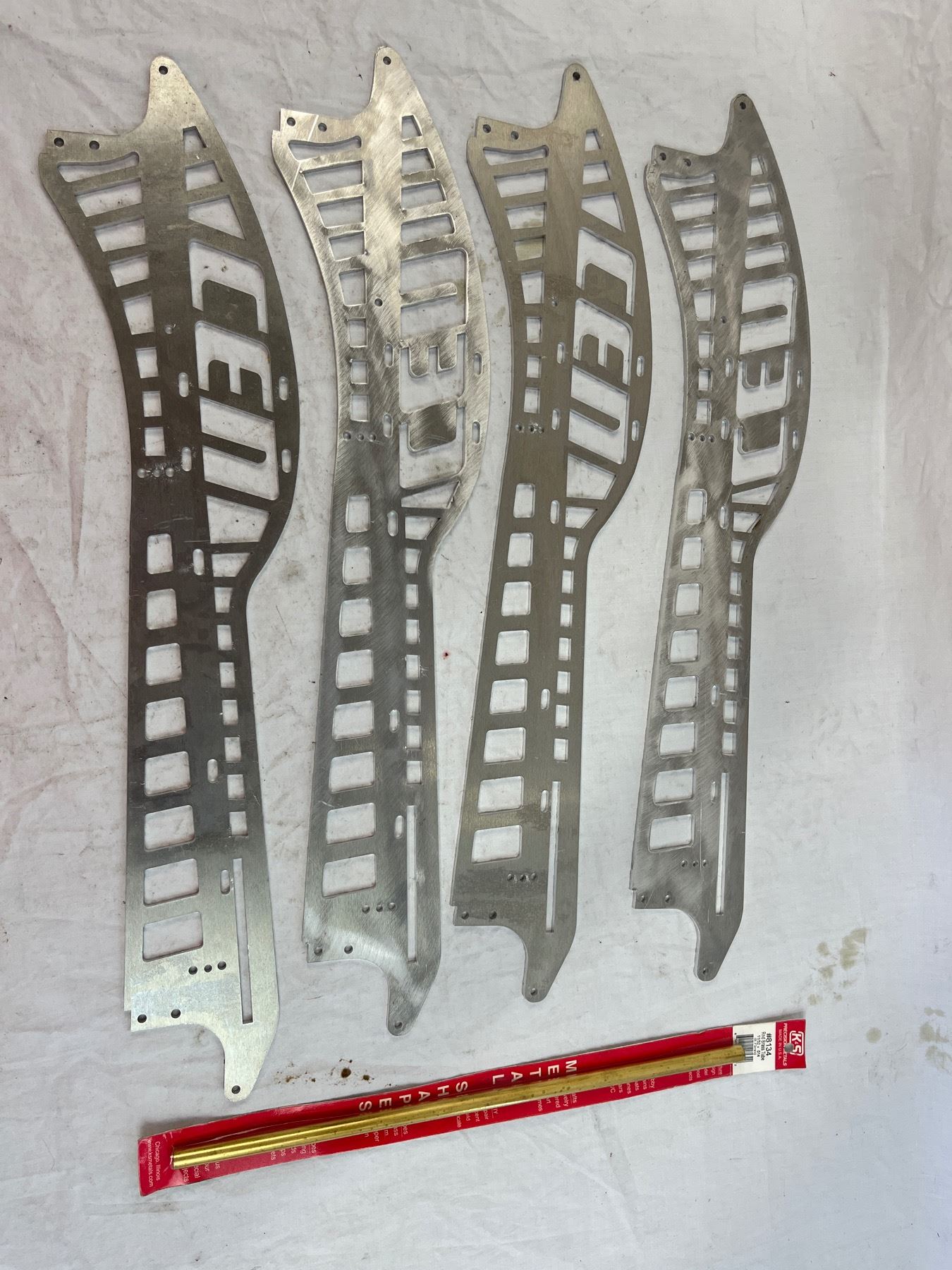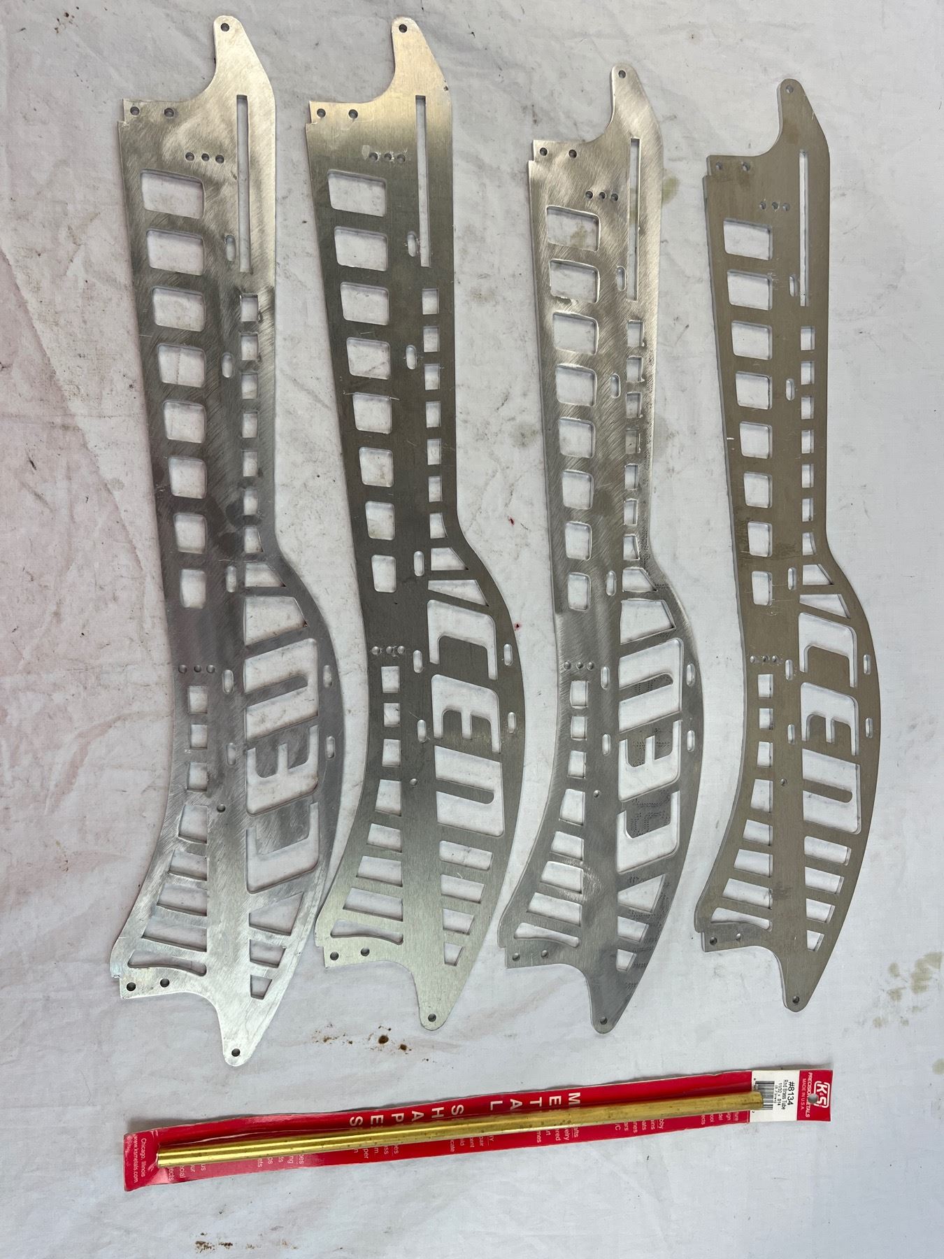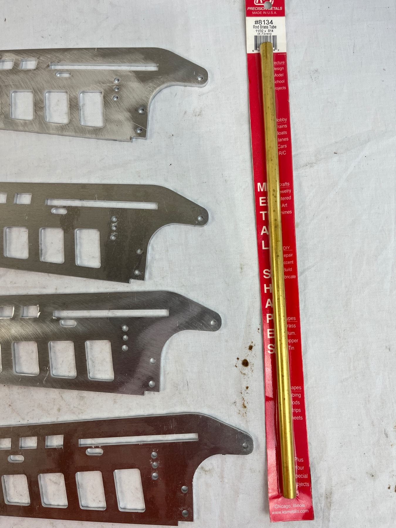 19. 3/8" long 5" tall brushed aluminium chassis side pannels. Comes with 12" brass tube.
