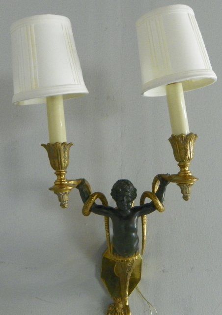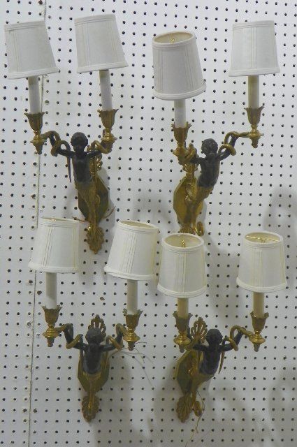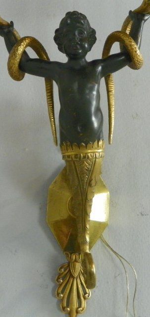 Two toned, bronze & dore bronze depicting Cupid. Approx. 20" H to top of shade. Please read our terms of sale.