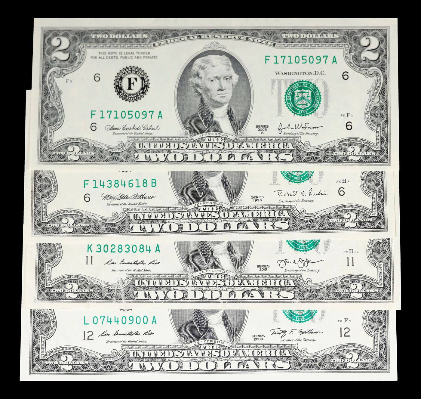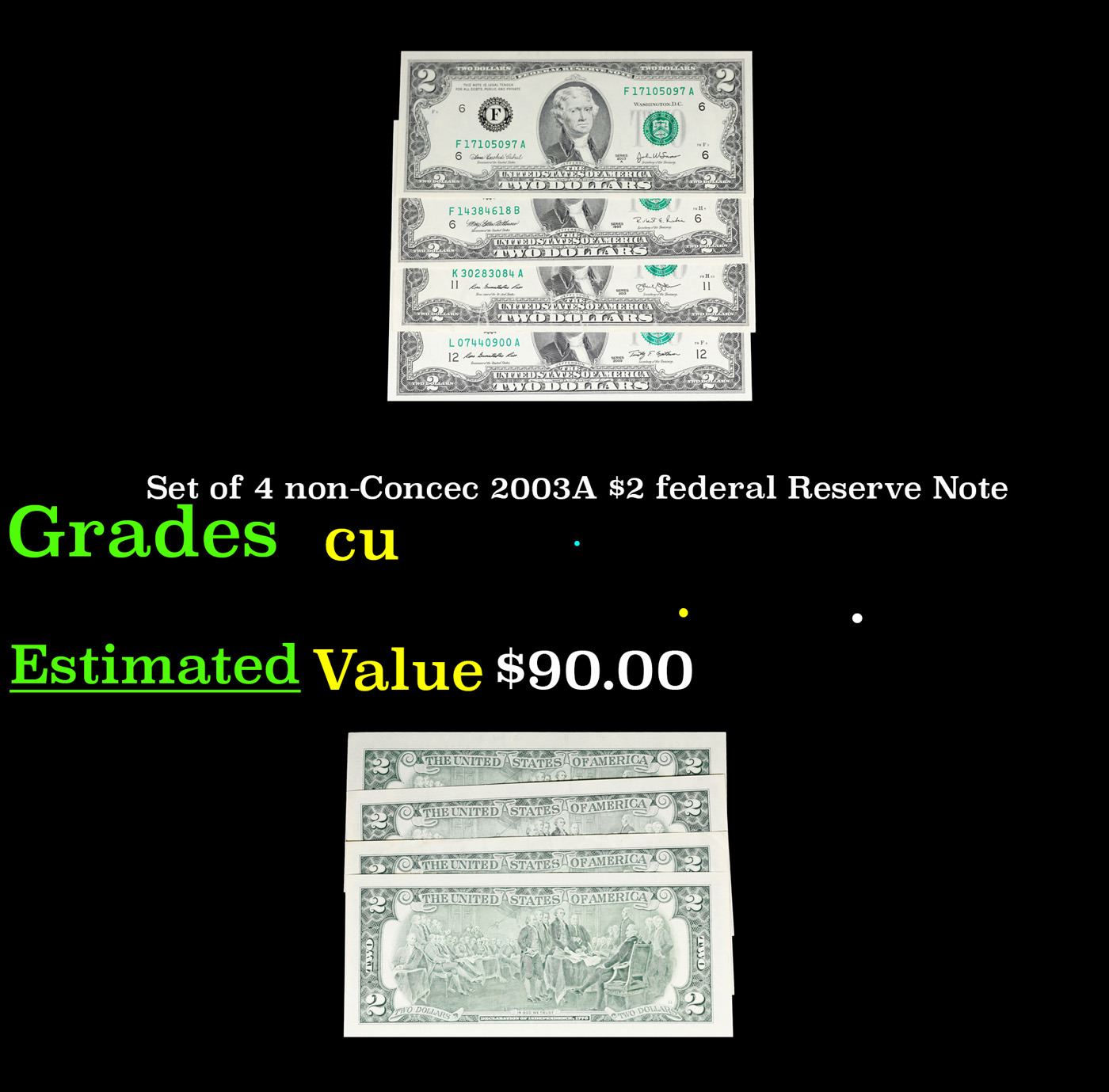 Set of 4 non-Concec 2003A $2 federal Reserve Note Grades CU.