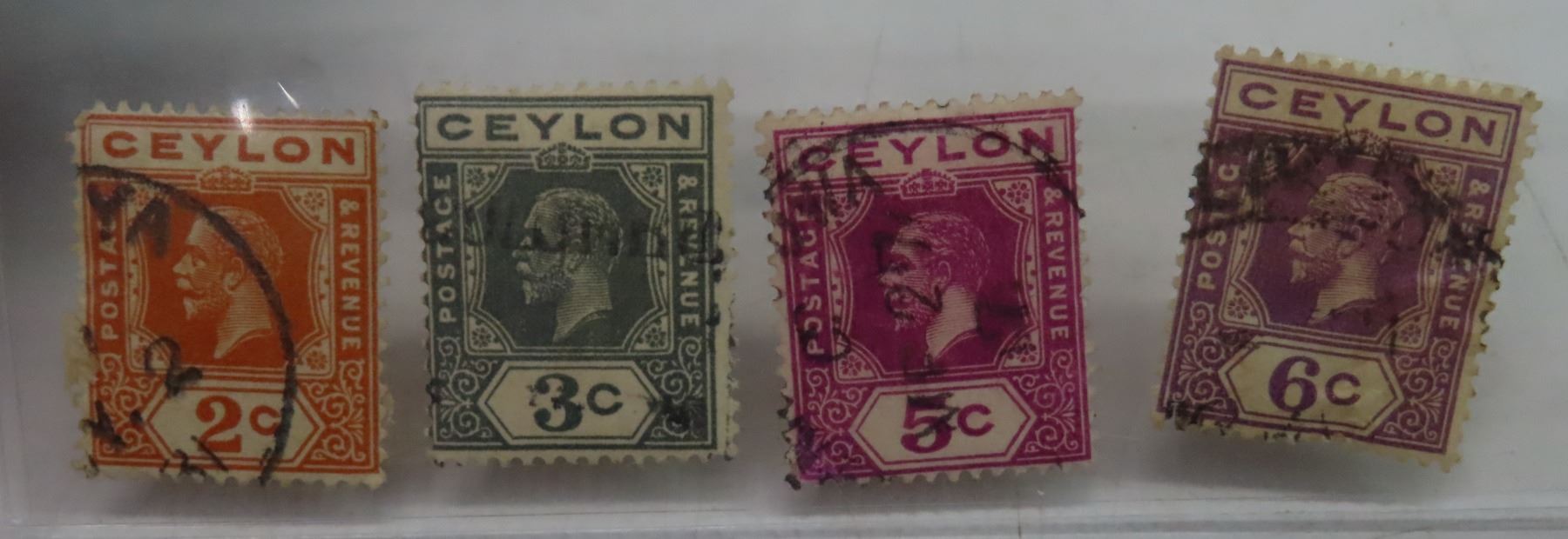Set of 4 old Stamps from Ceylon depicting King George V. Used.
