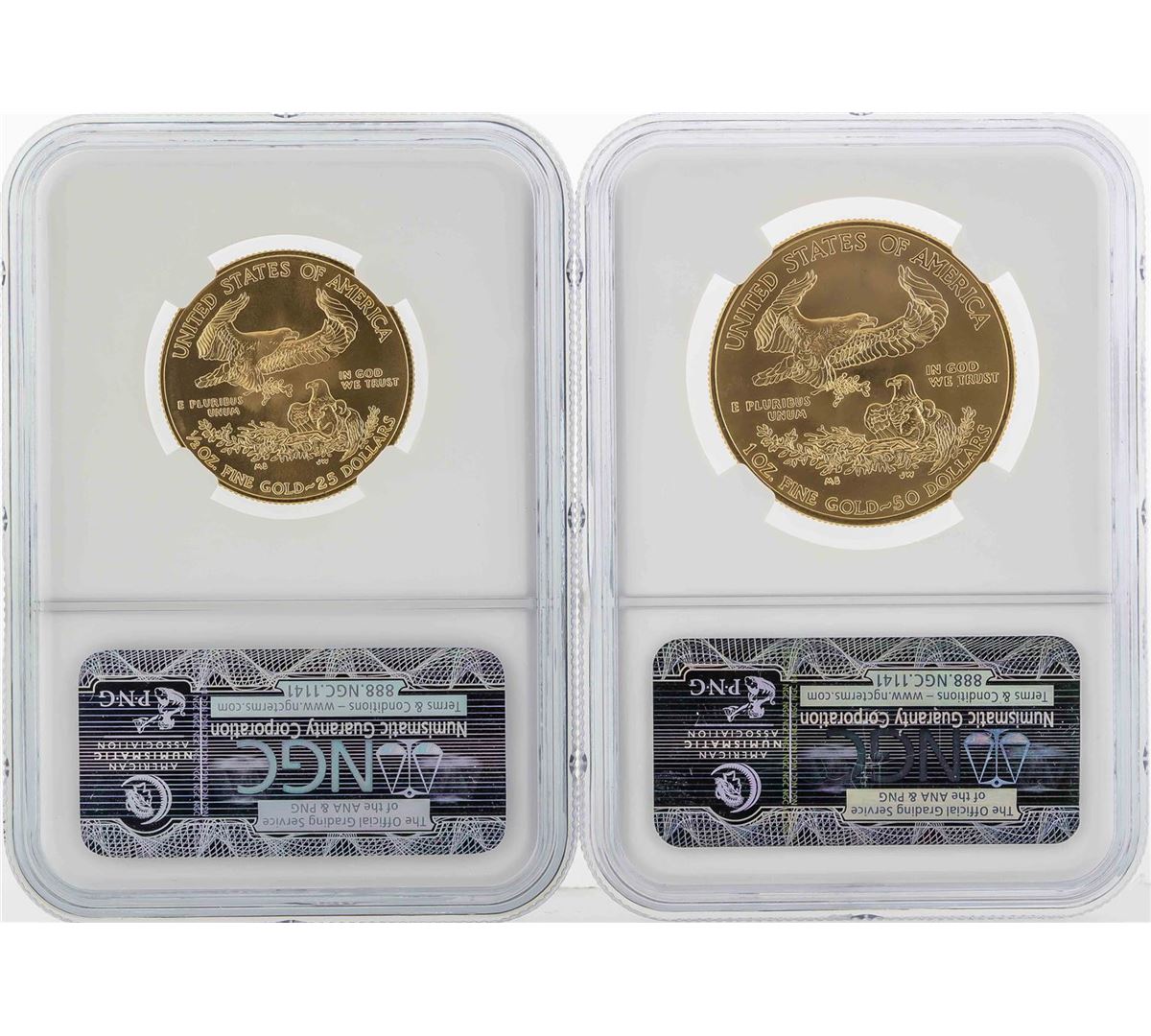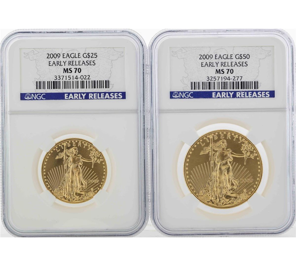 One Set of $5/$10/$25/$50 2009 American Gold Eagle Coins NGC MS70. NGC Certified.