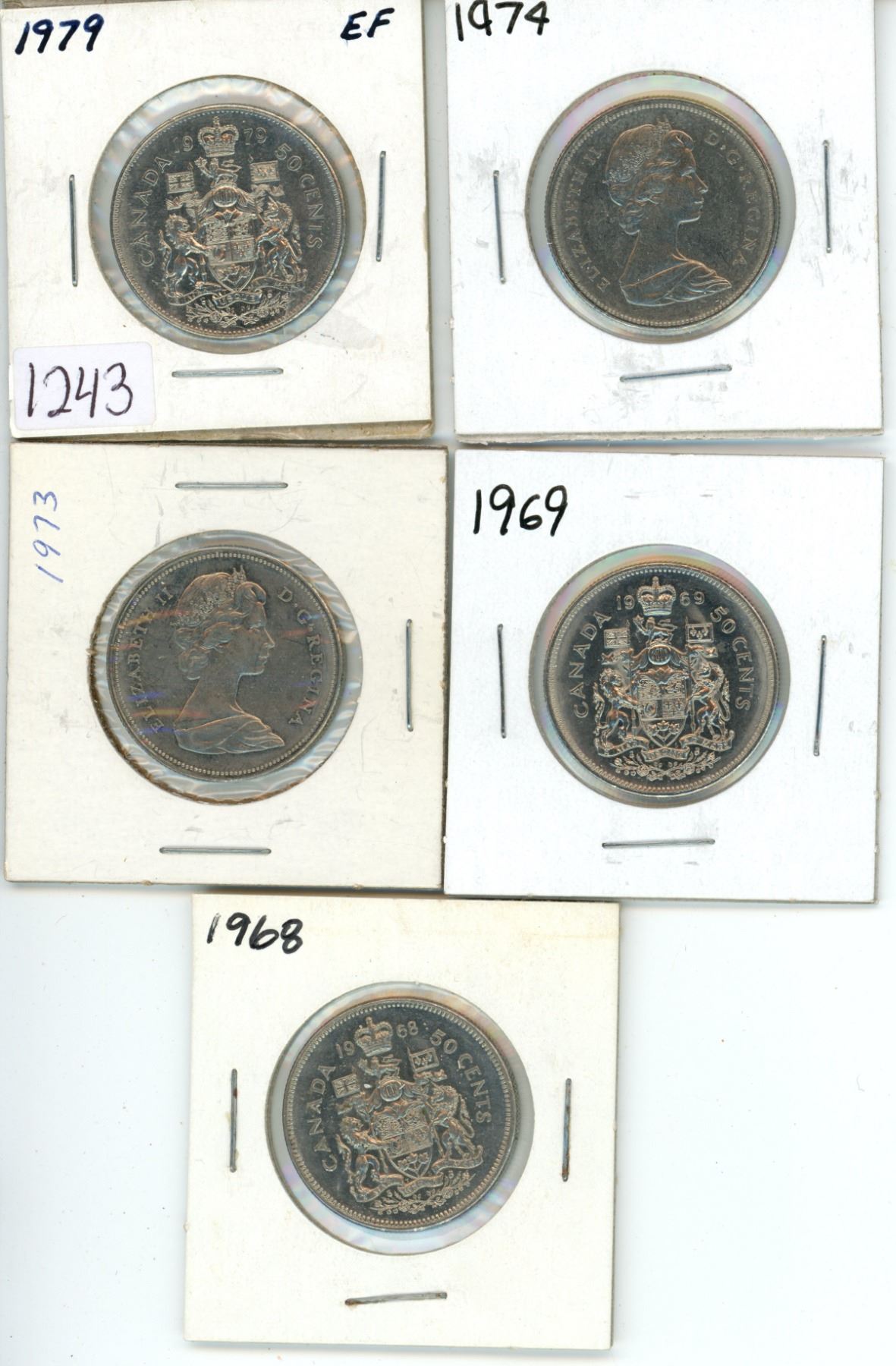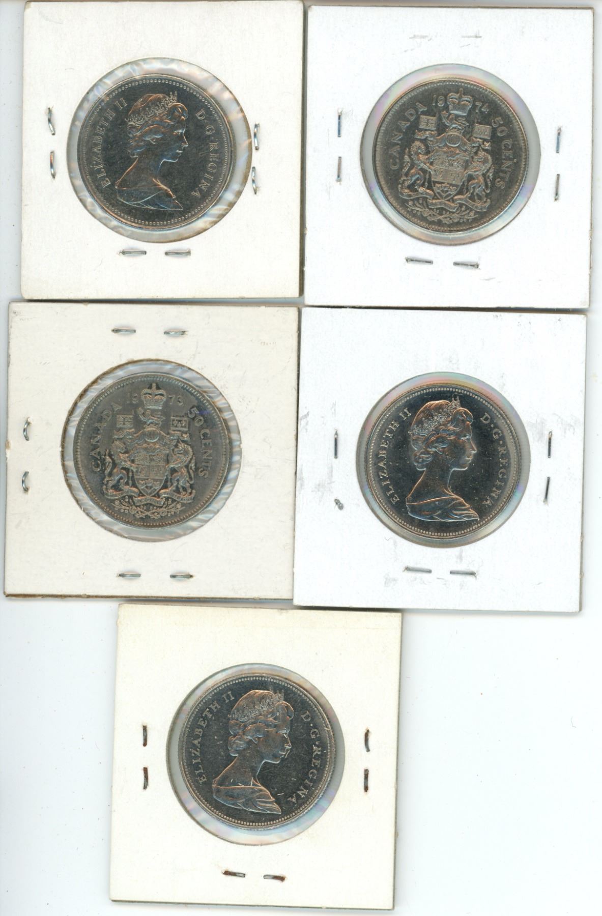 Set of 5 - 1968-69, 1973-74 & 1979 Canadian 50 cent coins