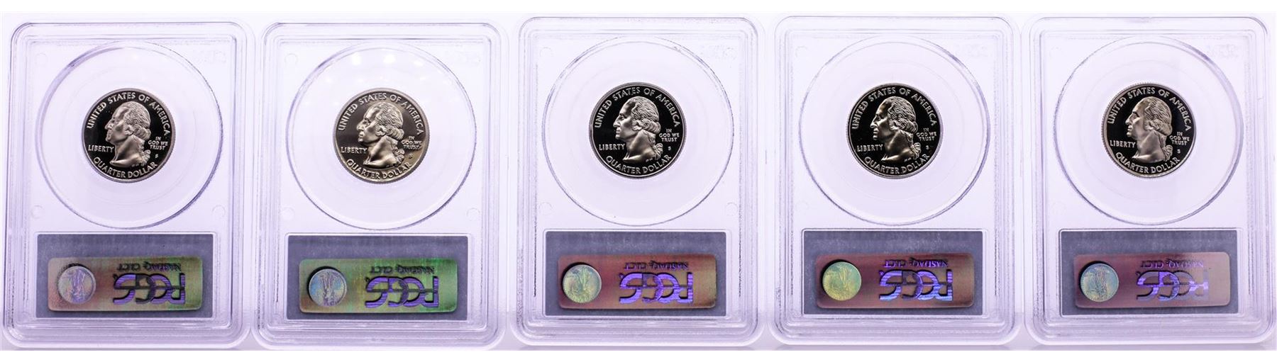 One Set of (5) 2000-S Proof State Quarter Coins PCGS PR69DCAM. PCGS Graded.