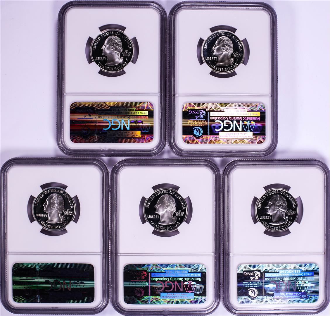 One Set of (5) 2001-S Silver Proof State Quarter Coins NGC PF69 Ultra Cameo. NGC Certified.