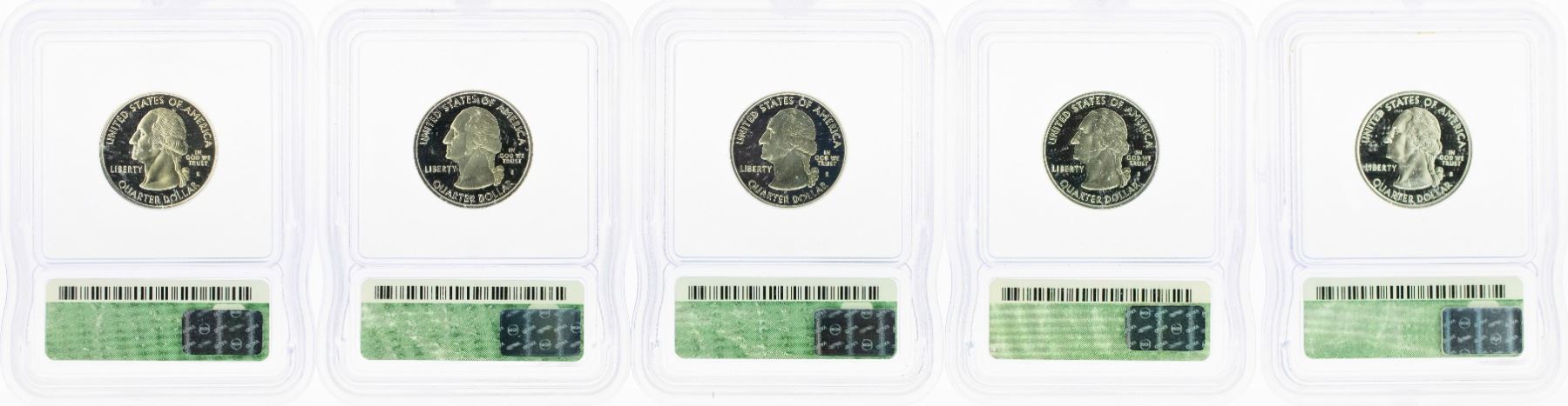One Set of (5) 2001-S Statehood Quarter Silver Coins ICG PR70 DCAM.