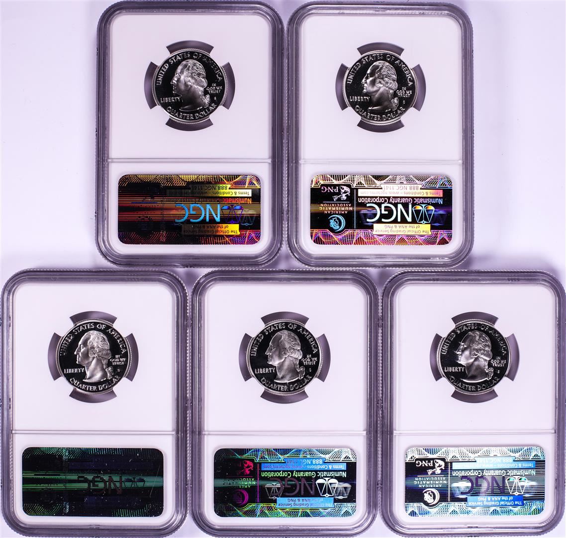One Set of (5) 2003-S Silver Proof State Quarter Coins NGC PF69 Ultra Cameo. NGC Certified.