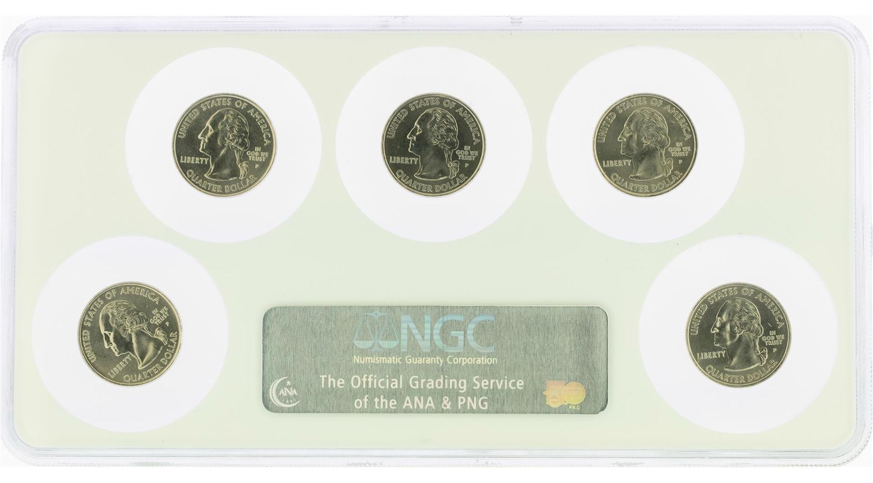 One Set of (5) 2004-P Uncirculated State Quarter Coins NGC MS65. NGC Certified.