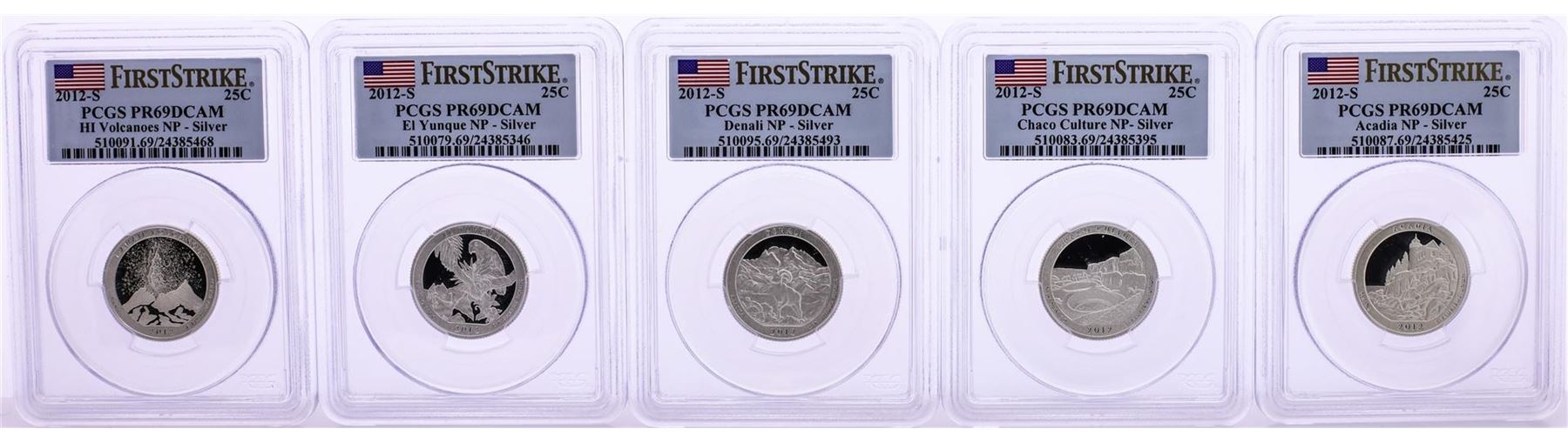 One Set of (5) 2012-S Proof National Parks Quarter Silver Coins PCGS PR69DCAM First Strike. PCGS Graded.