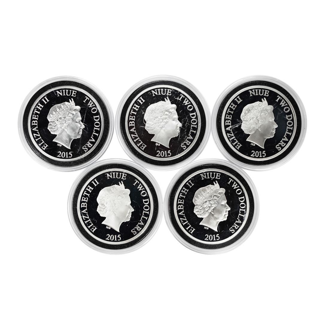 One Set of (5) 2015 Niue $2 Proof Avengers Age of Ultron Silver Coins.