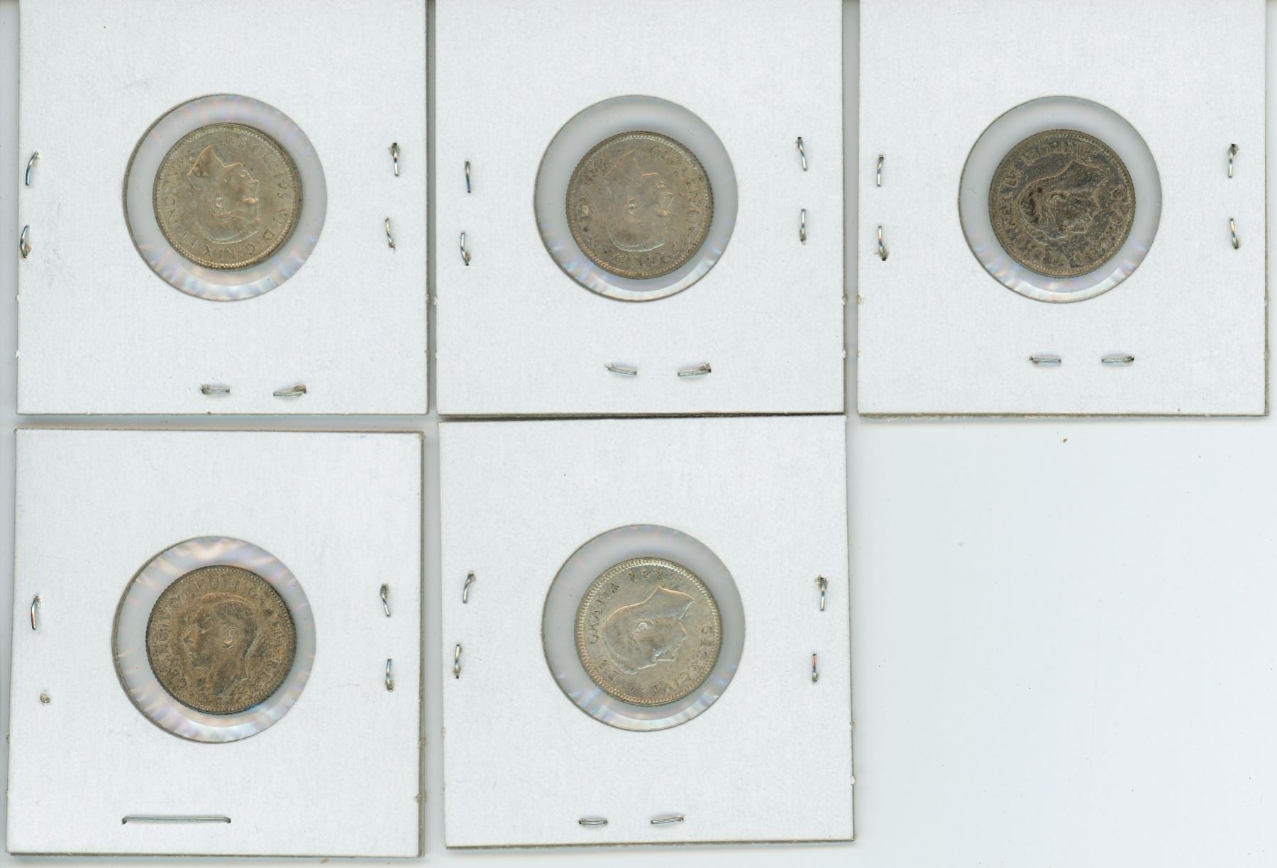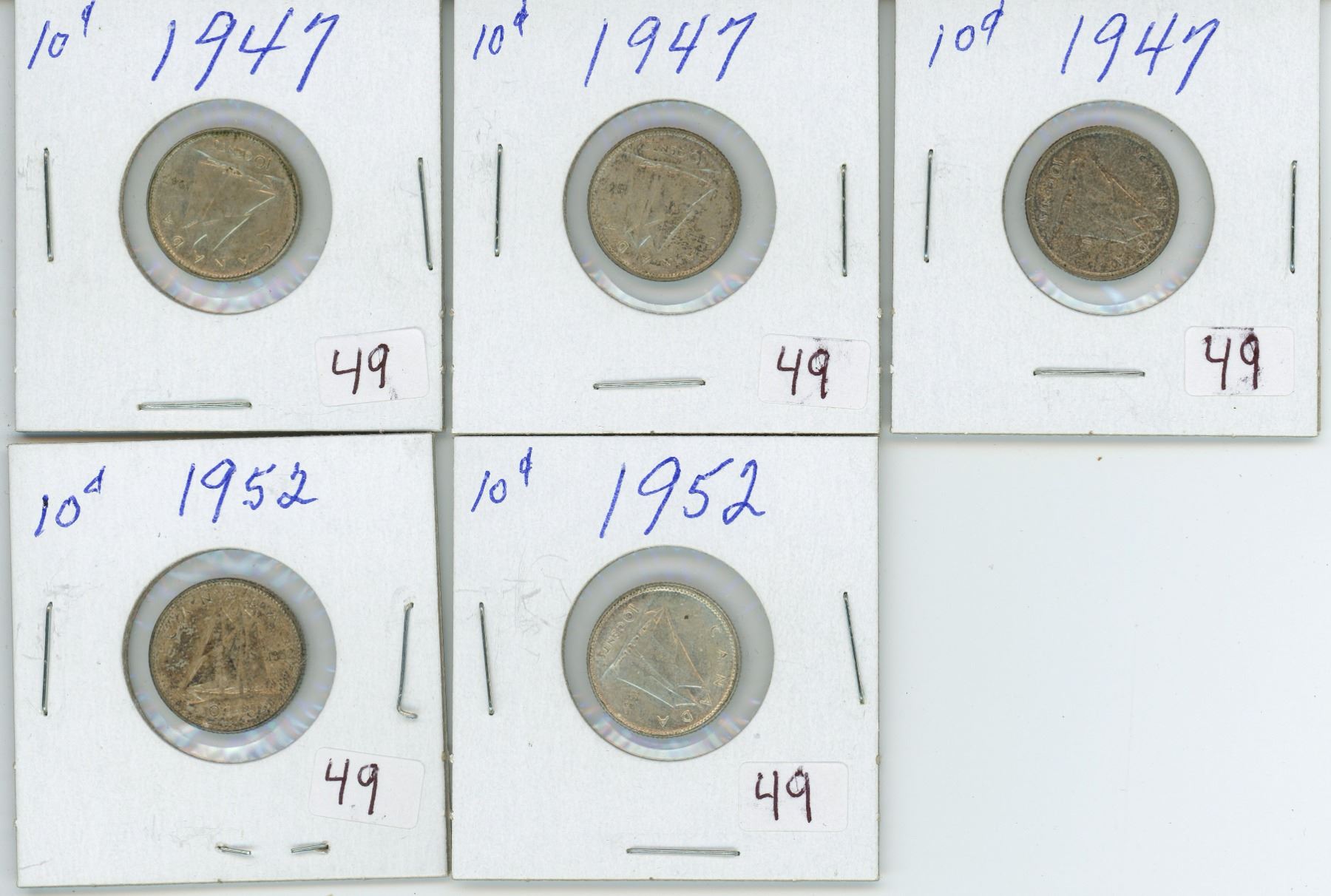 Set of 5, Canadian 10 cent coins - 1947 & 1952