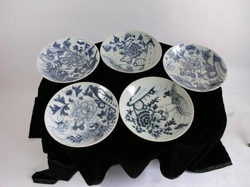 Northern China (19th Century) blue and white glazed porcelain with floral and phoenix bird. Stamped and etched verso with Chinese character monogram. Two plates have been repaired, dia. 10" each.