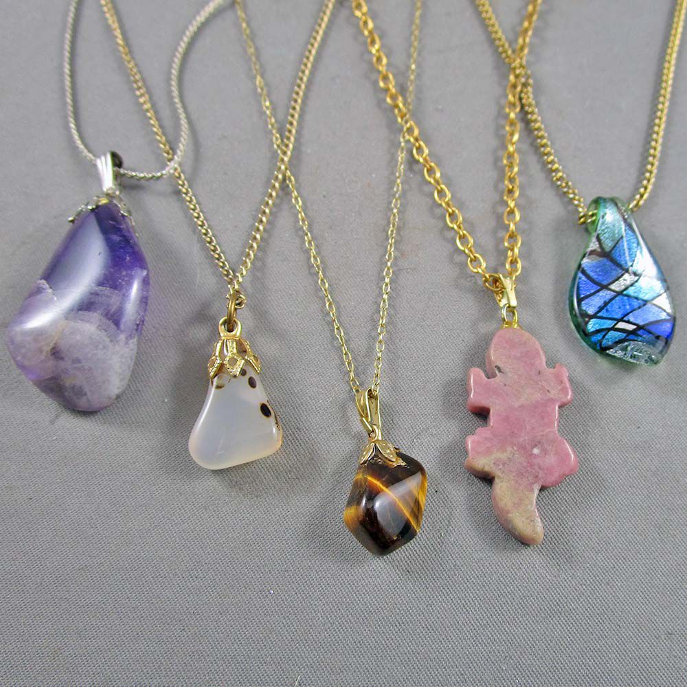 Amethyst, Tourmaline Quartz, Tiger Eye, Rhodonite and Dichroic Glass