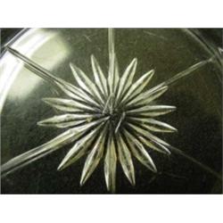 Heisey glass coasters.  Lot of 5.  Marked in center.  4-1/8".  Condition:  Normal wear marks.  No chips or cracks.