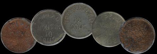 Set of 5 "Leroux" tokens from EDOUARD MARCHAND, Tanneur 1823 York. St.Cuthbert, a QUEBEC village. Se