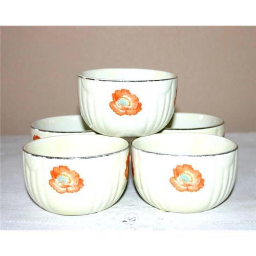 <tr><td>Title:Set of 5 Orange Poppy Hall Custard Cups</td></tr>