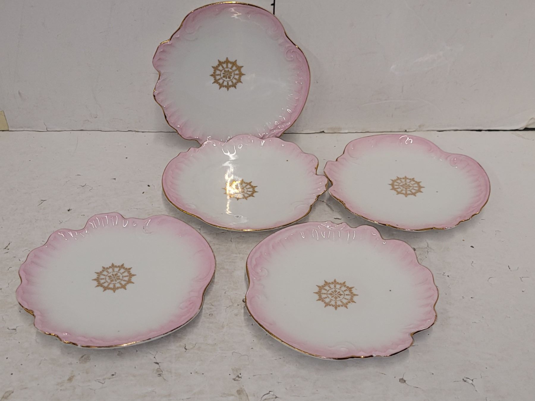 Set of 5 PInk & Gold Dessert Dishes - Elbogen Carlsbad