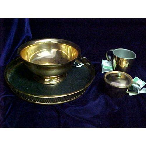 Set of 5 Piece Copper Cream & Sugar, Tray & #2226706
