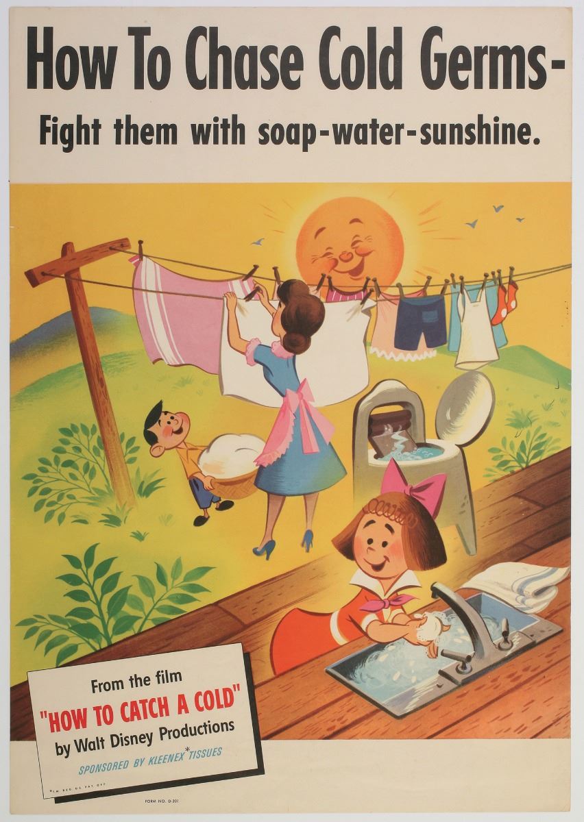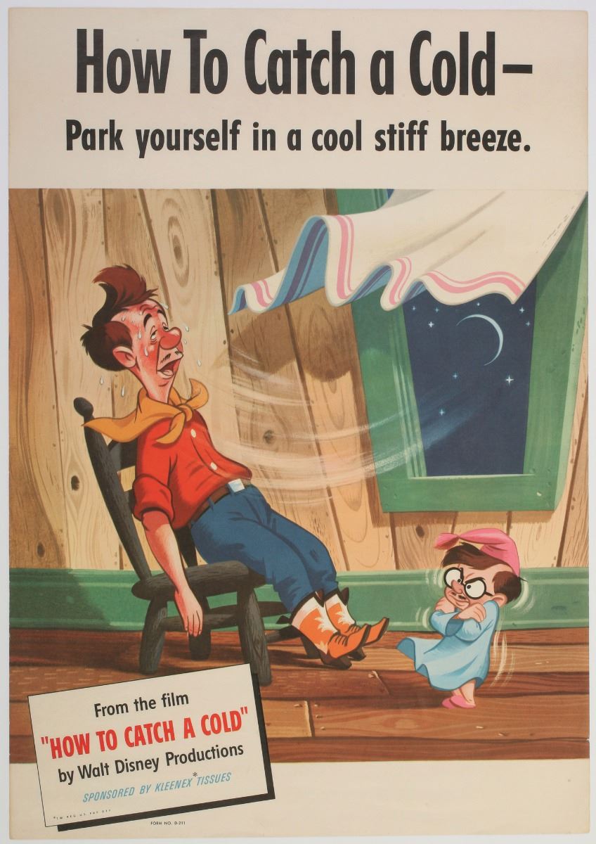 (Walt Disney Studios, 1951) Collection of (5) Publicity posters for the Kleenex sponsored educational film “How to Catch a Cold”. Each poster measures 14.5"x20". All are in very good condition.