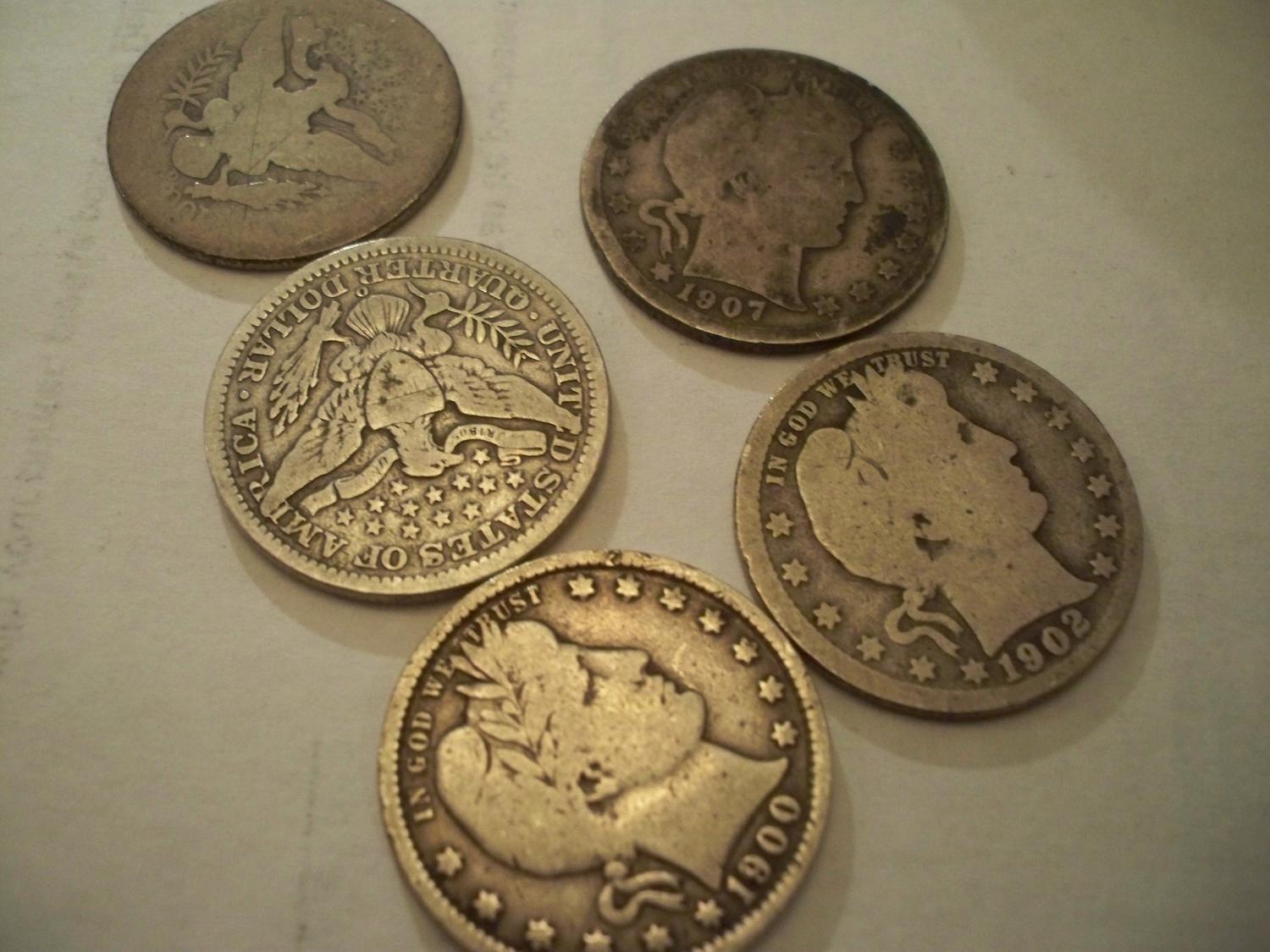 Set of 5 Silver Barber Quarters