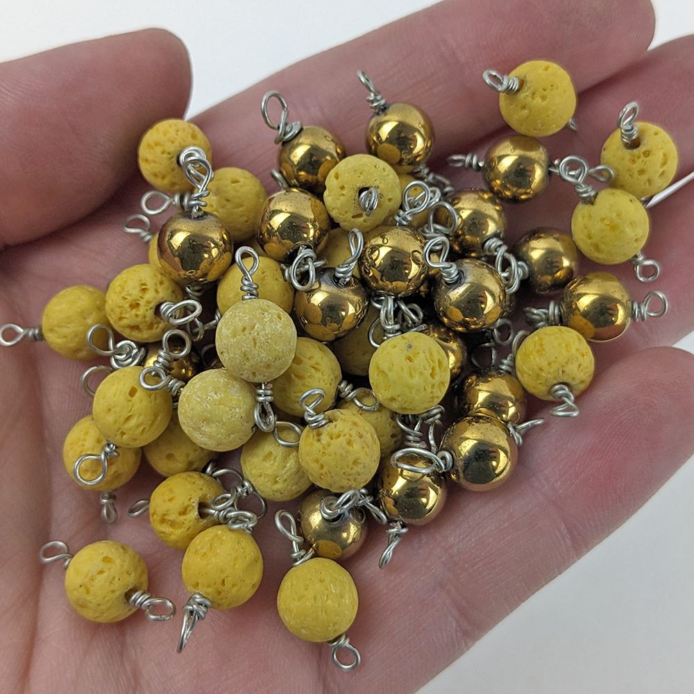 8mm Lava & Lava Beads threaded through with wire to link together.