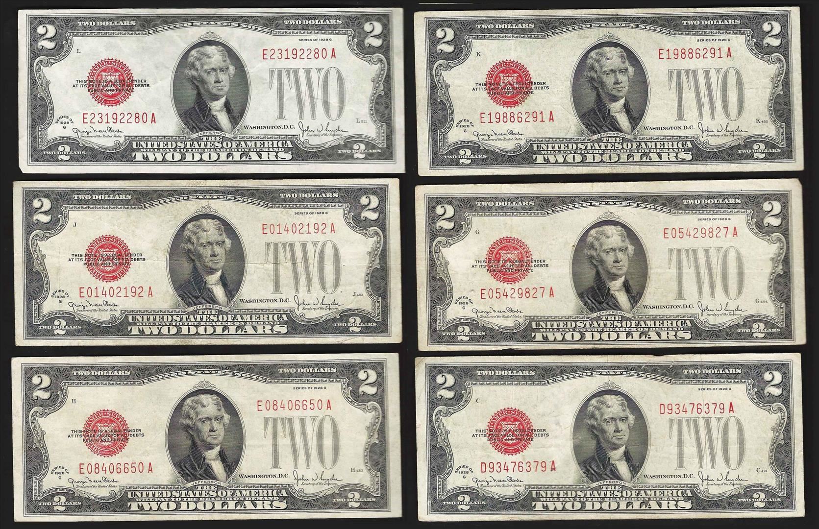 One Set of (6) 1928G $2 Legal Tender Notes.
