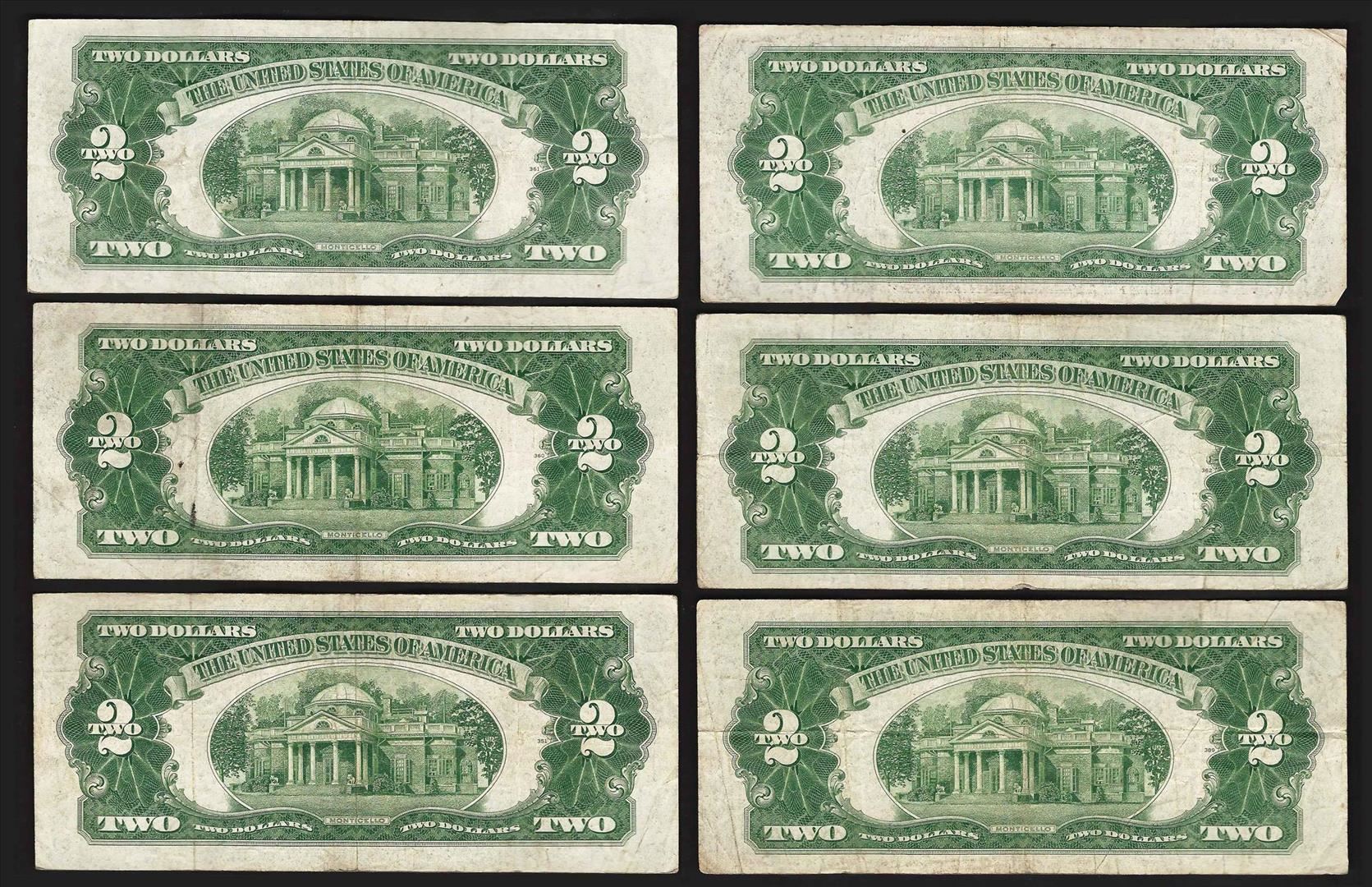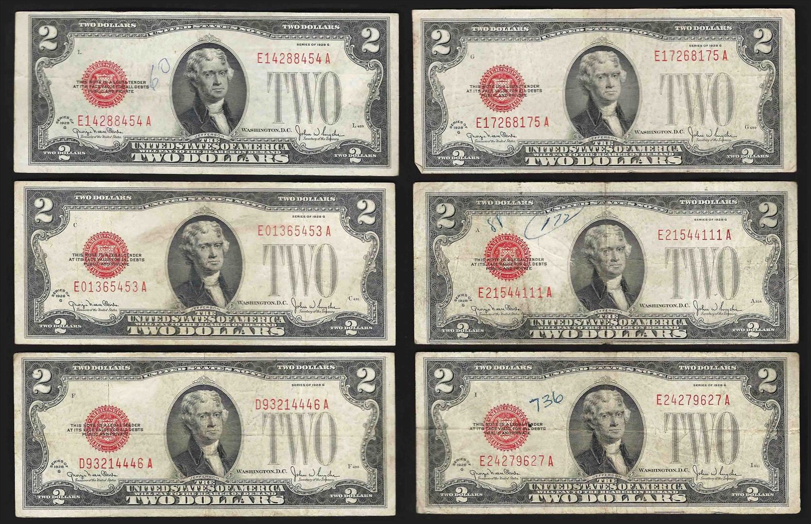 One Set of (6) 1928G $2 Legal Tender Notes.