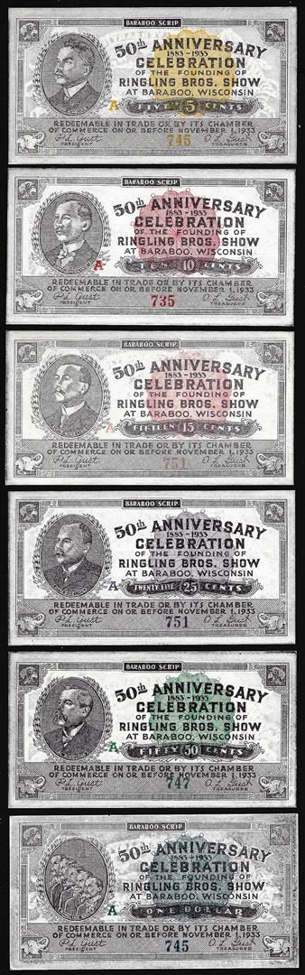 One Set of (6) 1933 Ringling Bros Show Scrip Notes.