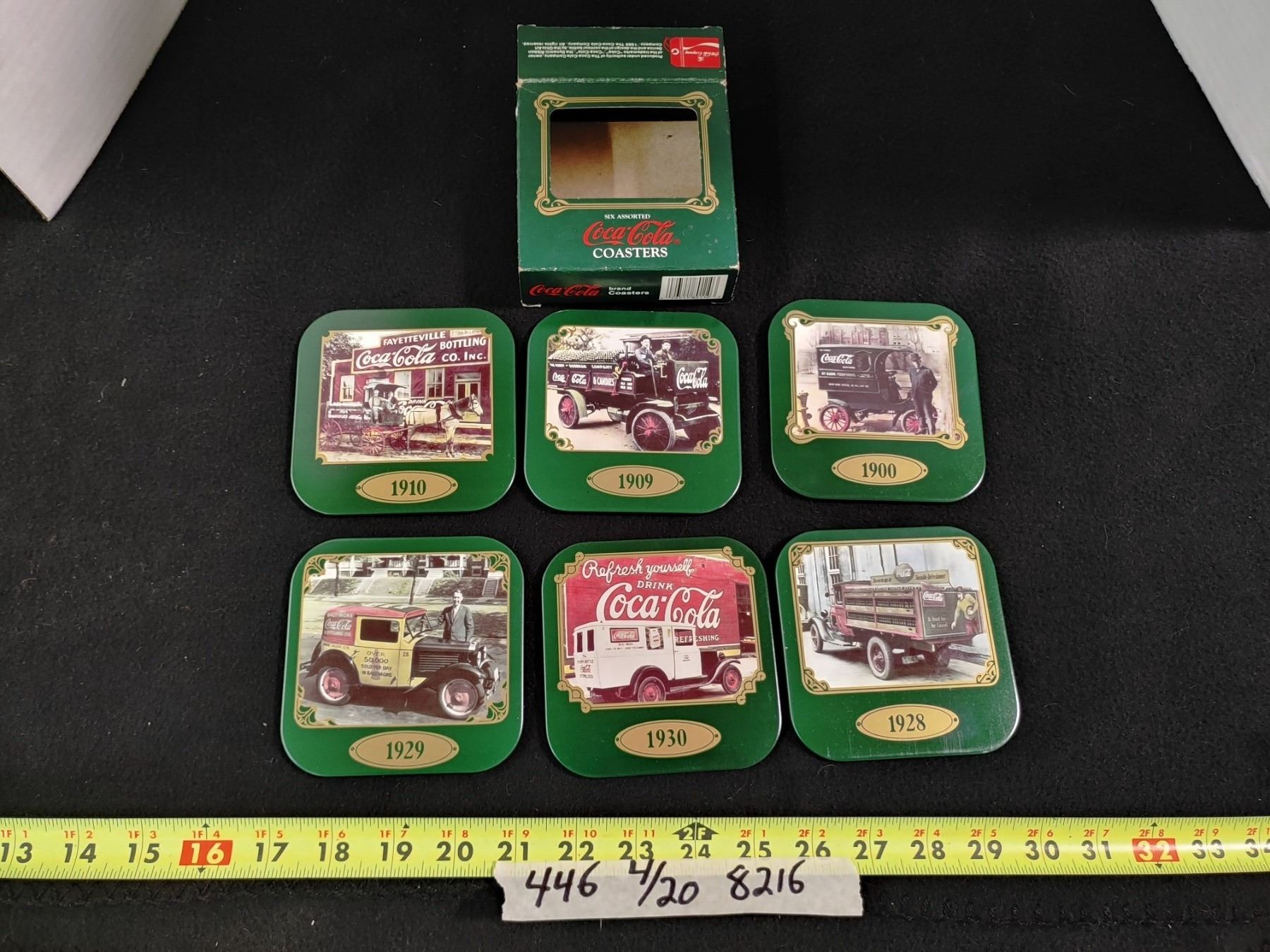 Set of 6 Coca Cola Coasters Depicting Early 1900s Coke Trucks