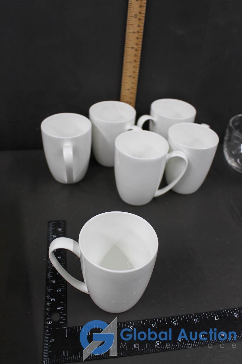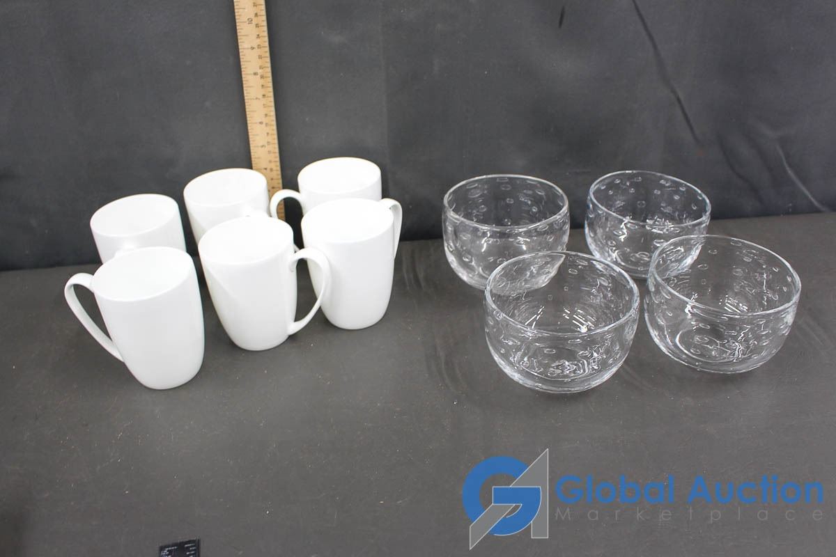 Set of 6 Coffee Cup and a Set of 4 Clear Glass Bowls