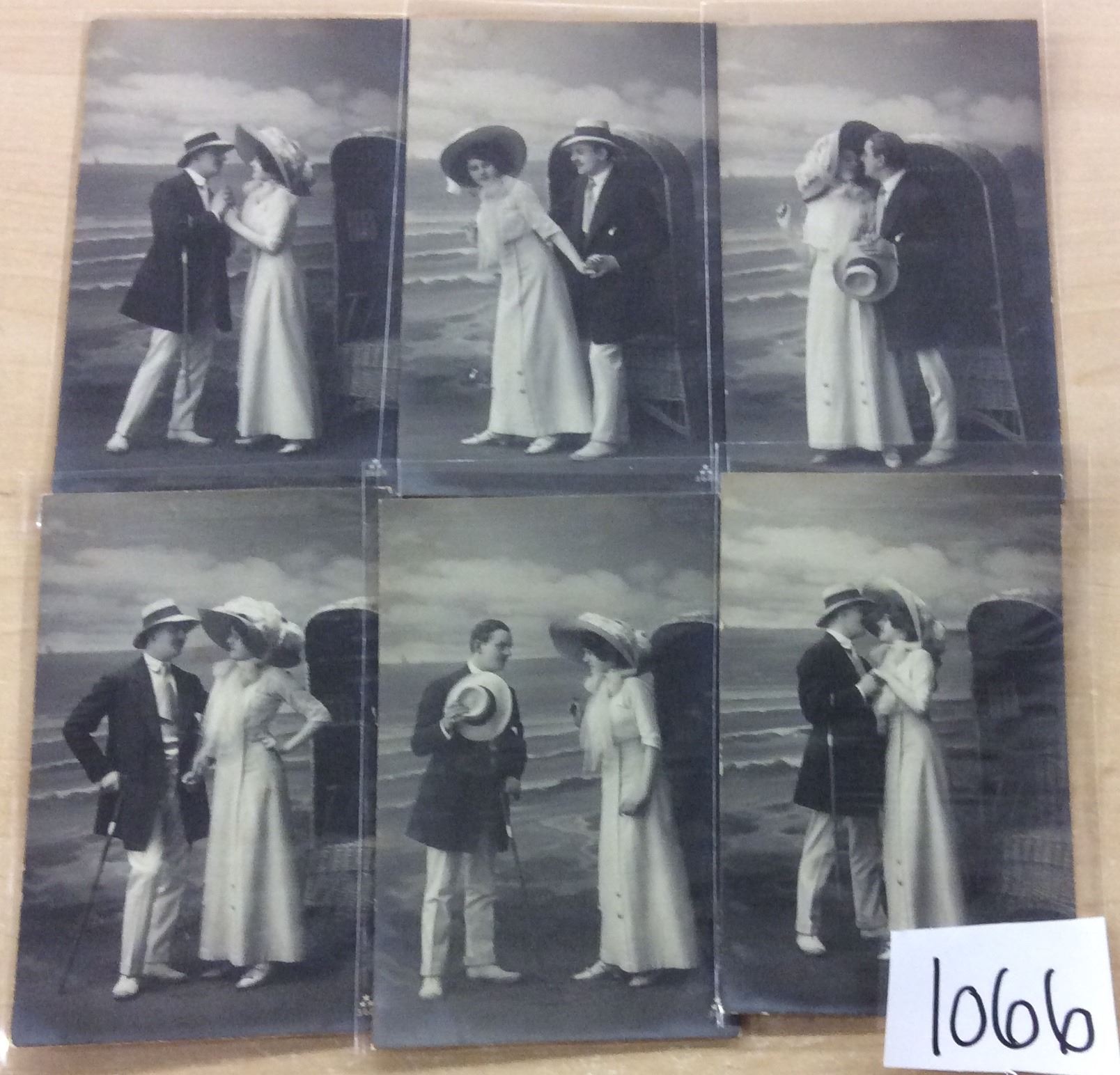 Set of 6 Couples on Beach Real Photo Postcards