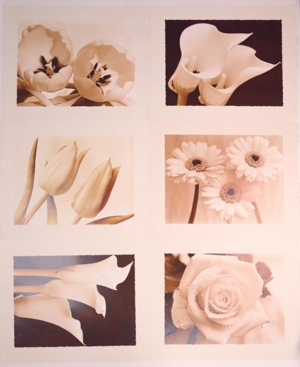 Up for sale is a Set of six 15.5" x 19.5" flower toned photographic prints that will look great framed and hung throughout your home. The artist is unknown.