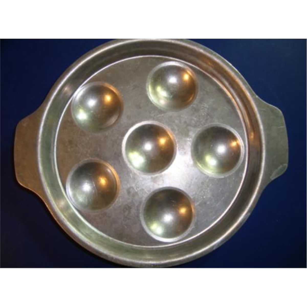 Set of 6 French escargot snails plates + tongs in perfect condition. Plates and tongs were made of stainless steel. These 6 hole plates will also be perfect for stuffed mushrooms. As you can see on photo, these plates were made by Tournus, France. Plate: 7" x 6" Snail tong: 6.5" length We ship from Texas (not from France)!