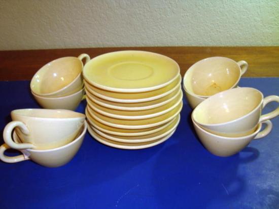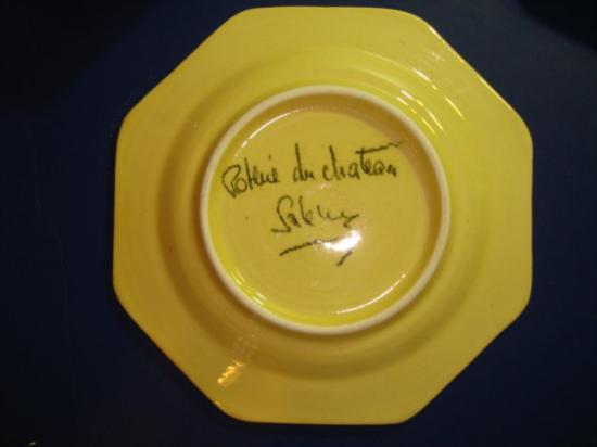 Here is a wonderful set of 6 French salade plates made by a famous potter (Lamerand) from the village of Salernes (famous for the quality of the pottery made in this part of Southern France) in Provence. These plates were hand-made by Mr Lamerand. He also made his own color with natural materials. Each piece is signed by the artist "Poterie du Chateau, Salernes". We also have a set of diner plates and a set of coffee cups. We ship from Texas, not from France. Diameter: 8.25"