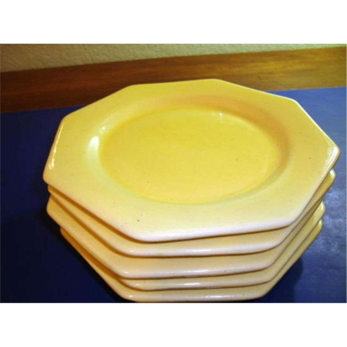 Here is a wonderful set of 6 French salade plates made by a famous potter (Lamerand) from the village of Salernes (famous for the quality of the pottery made in this part of Southern France) in Provence. These plates were hand-made by Mr Lamerand. He also made his own color with natural materials. Each piece is signed by the artist "Poterie du Chateau, Salernes". We also have a set of diner plates and a set of coffee cups. We ship from Texas, not from France. Diameter: 8.25"