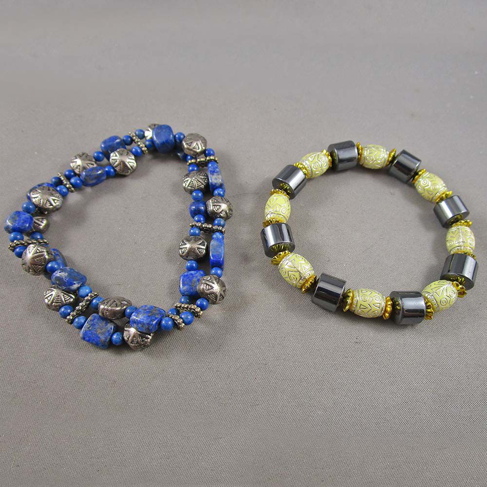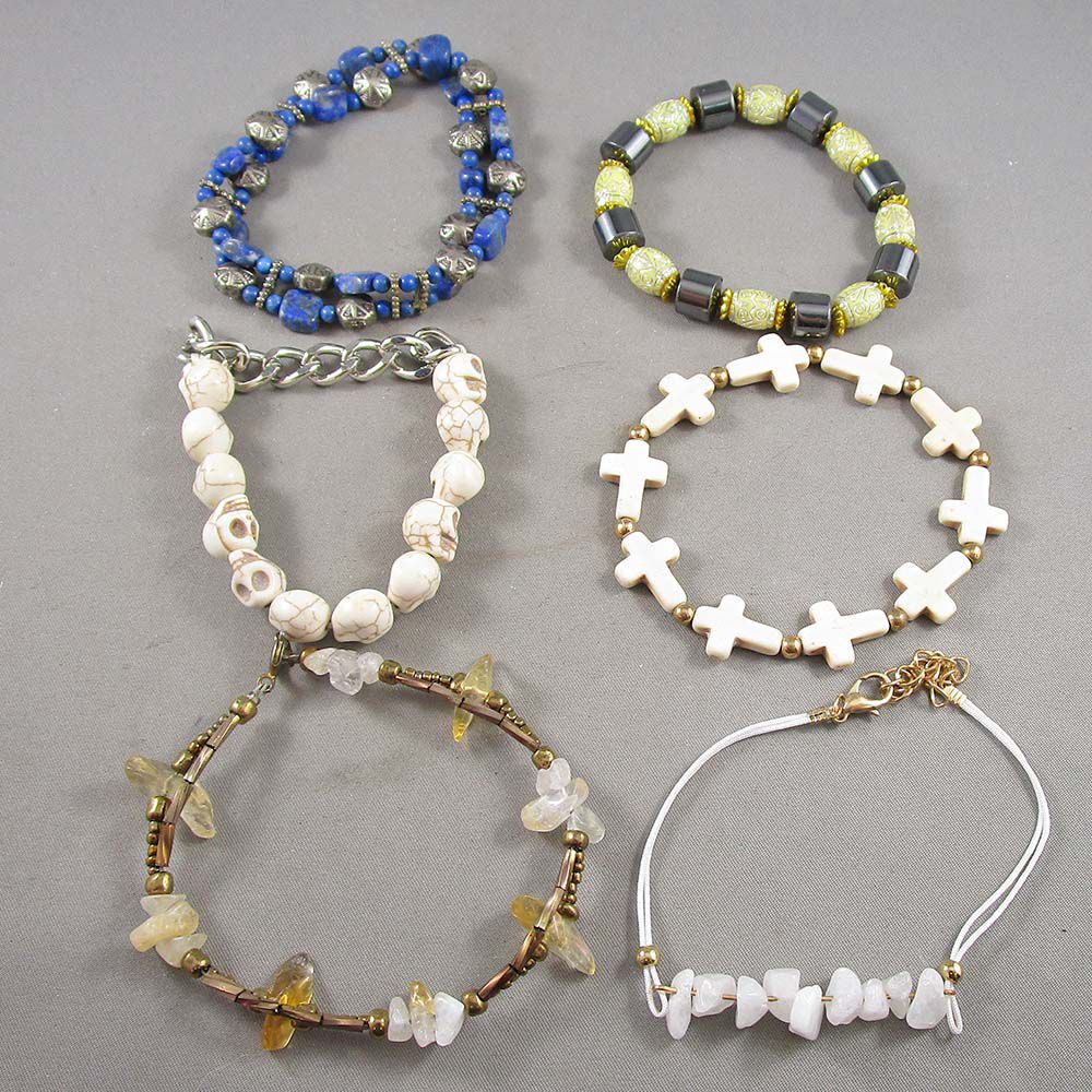 Set of 6 Gemstone Bracelets - Lapis Lazuli, Hematite, Quartz, Howlite, Fossil