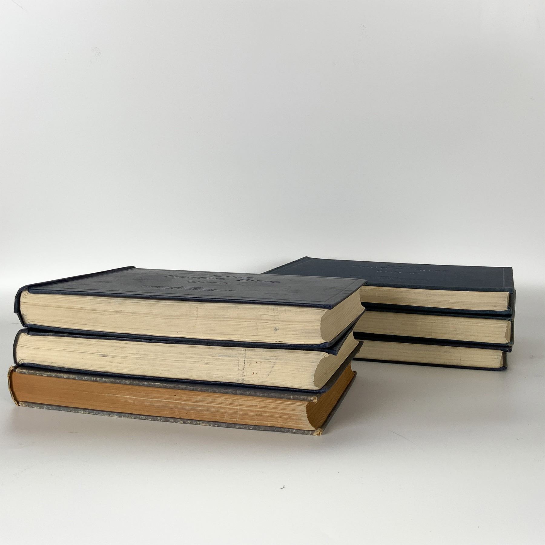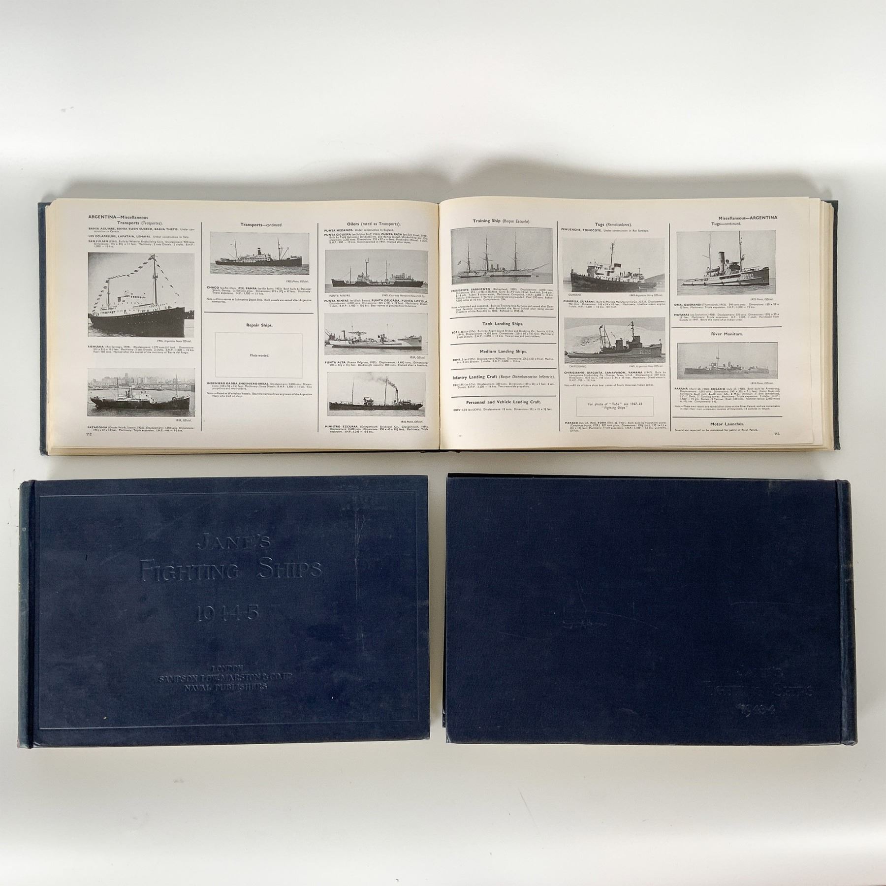 A collection of six vintage editions of Jane's Fighting Ships, the authoritative reference series documenting the world's naval forces. This set includes the years 1942, 1943-44, 1944-45, 1946-47, 1947-48, and 1949-50, published by Sampson Low and Macmillan. These books provide invaluable historical insight into naval fleets, warships, and maritime technology during and after World War II. Featuring detailed ship specifications, illustrations, and strategic naval data, these volumes are highly sought after by historians, collectors, and military enthusiasts. The books exhibit expected wear consistent with age, including some fraying and spine wear, but remain structurally intact.