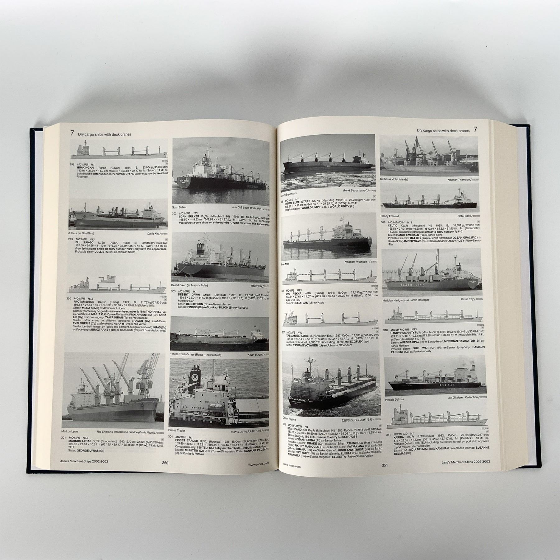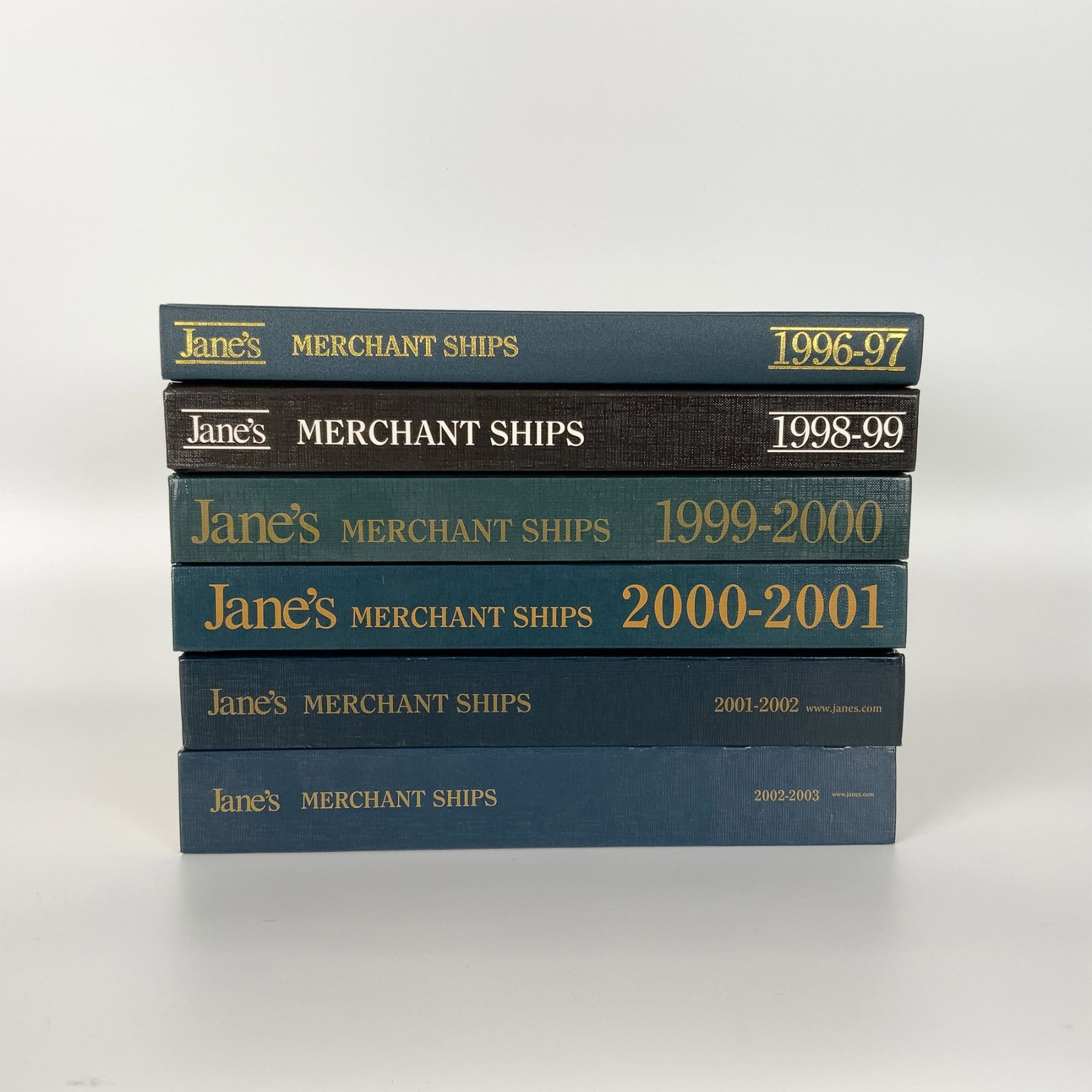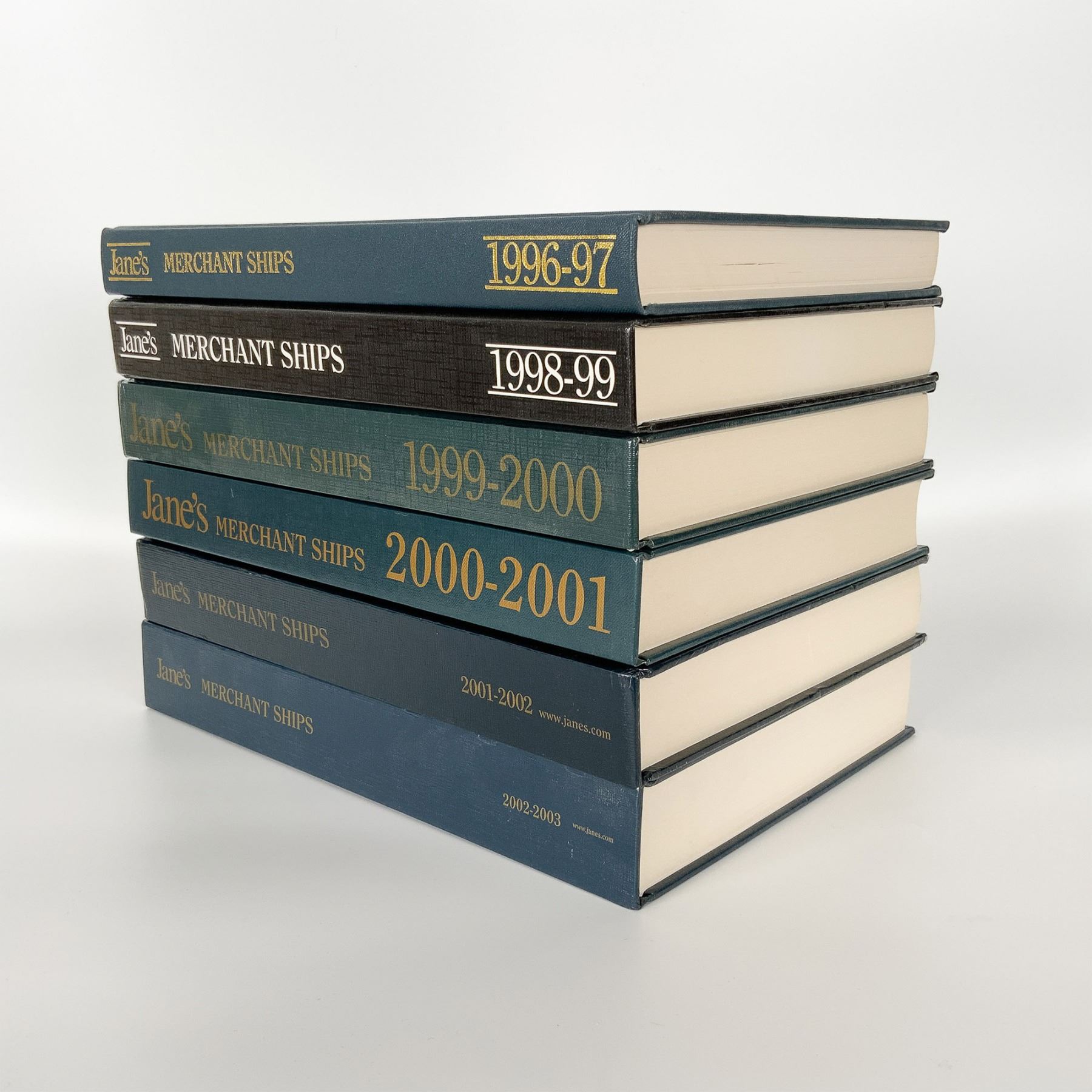 Comprehensive set of six Jane's Merchant Ships reference books, covering the years 1996-1997 through 2002-2003. These authoritative volumes provide detailed information on global commercial vessels, including specifications, photographs, and technical data. Published by Jane's, a renowned name in maritime intelligence, these books are an essential resource for researchers, historians, and maritime enthusiasts. The set includes the following editions: 1996-1997, 1998-1999, 1999-2000, 2000-2001, 2001-2002, and 2002-2003. Bound in durable hardcover formats, these volumes exhibit some signs of use but remain in overall good condition, making them valuable additions to any naval or shipping collection.