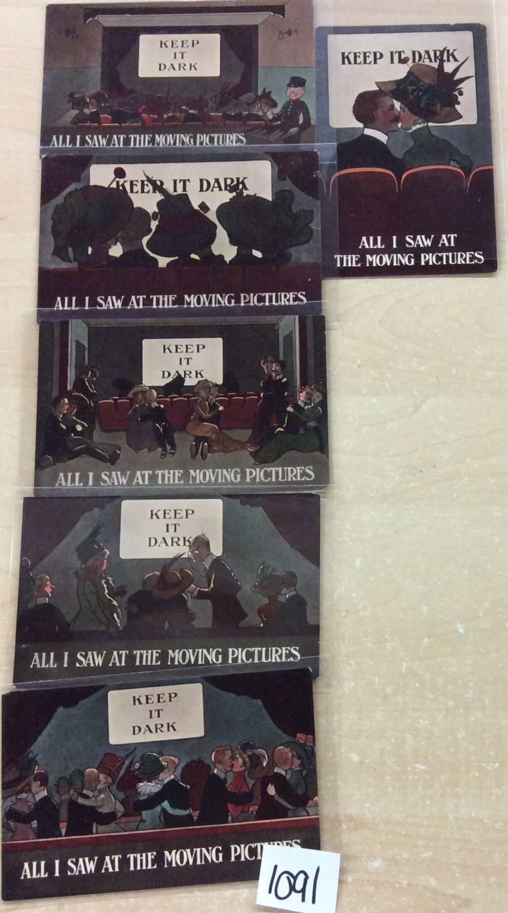 Set of 6 "Keep It Dark All I Saw at the Moving Pictures" Comic Postcards