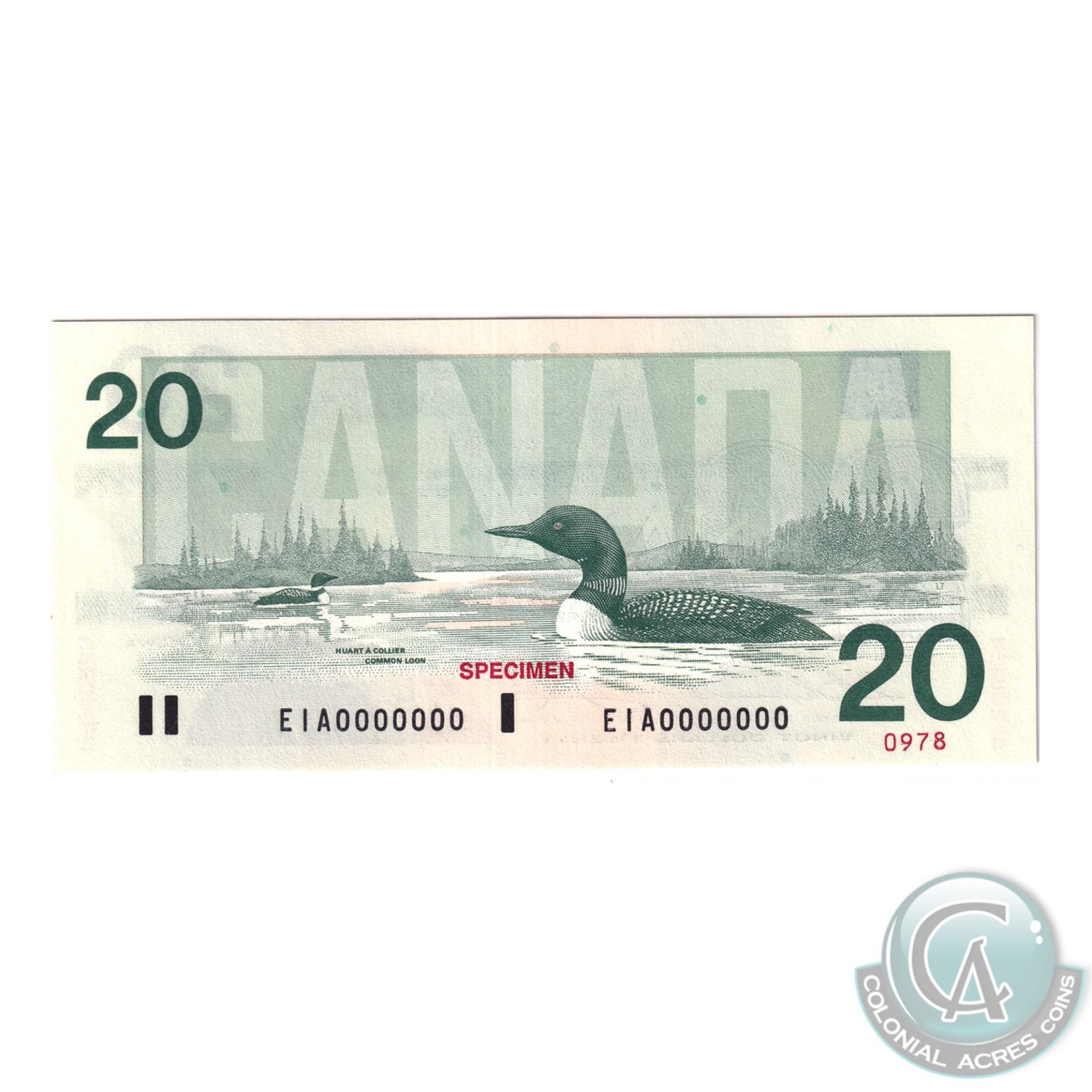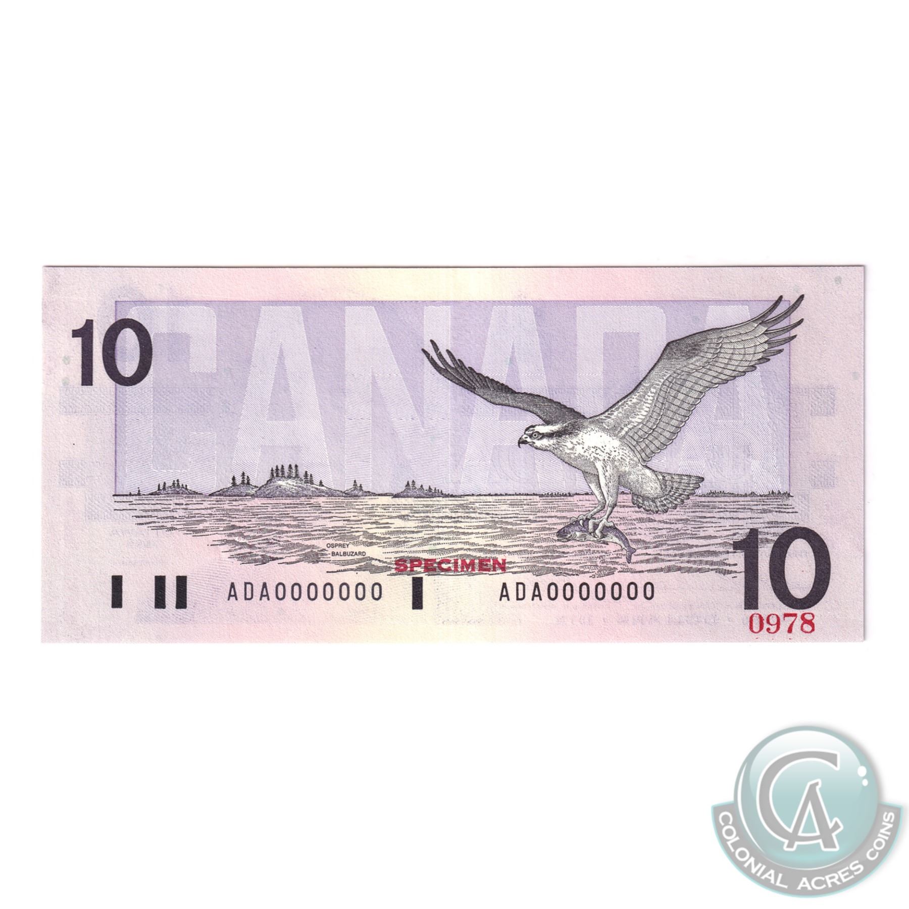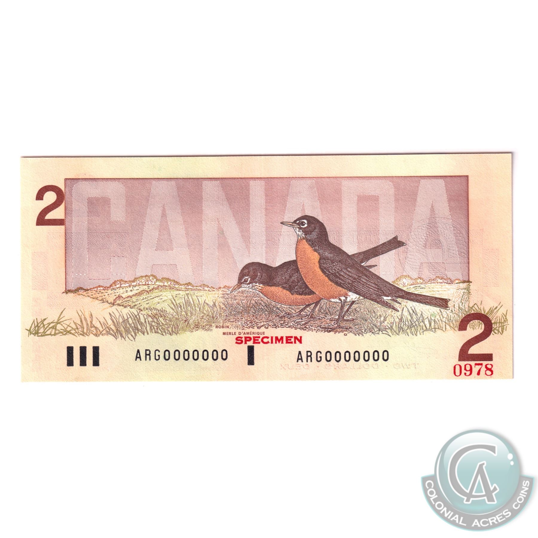 Set of 6 Matching SPECIMEN Notes of the Birds of Canada Issue. (Set#0978) All PMG Certified Gem UNC-65 & 66 EPQ! ($2,$5, $10, $20, $50, $100). Issued in the November 2000 Bank of Canada Sale. The set includes: 1986 $2 BC-55aS Crow-Bouey ARG Prefix (Gem UNC-65 EPQ), 1986 $5 BC-56aS Crow-Bouey ENA (Gem UNC-65 EPQ), 1989 $10 Theissen-Crow ADA Prefix (Gem UNC-65 EPQ), 1991 $20 Theissen-Crow EIA Prefix (Gem UNC-66 EPQ), 1988 $50 Theissen-Crow EHP Prefix (Gem UNC-66 EPQ), 1988 $100 Theissen-Crow AJN Prefix (Gem UNC-65 EPQ).