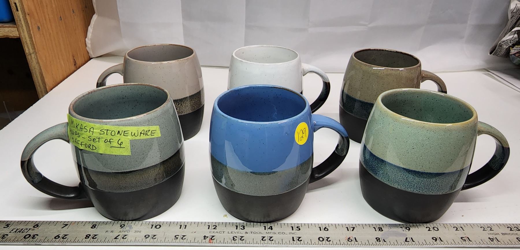 Set of 6 Mikasa Stoneware Mugs Tri-Color Like New