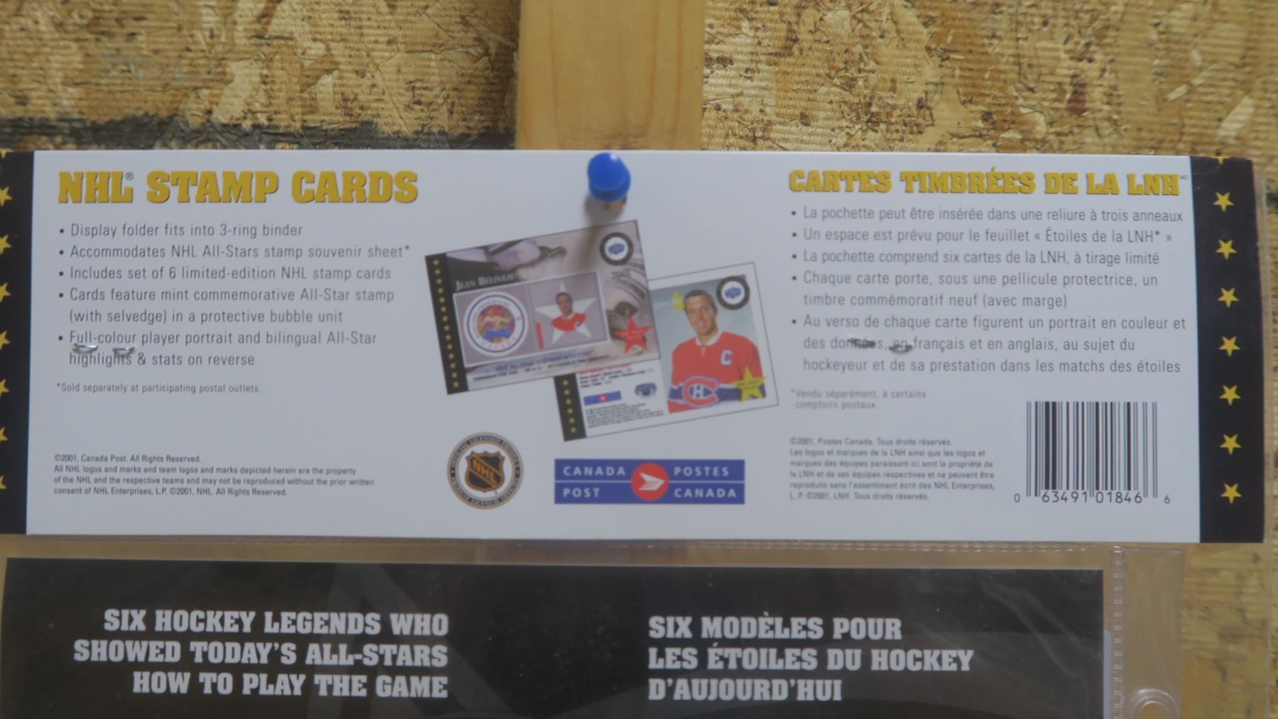 Set of 6 NHL Stamp Cards 2001 In original Package