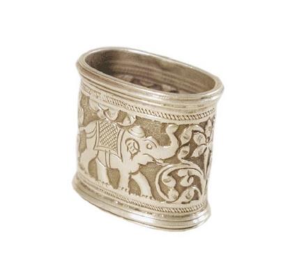 Set of 6 Napkin Rings - Hand Made Heavily Decorated Set of 6 Napkin Rings – 11.57 Oz (360 Grams) Approximate "Timeless Treasure" by Shakuntalam Silvercraft.