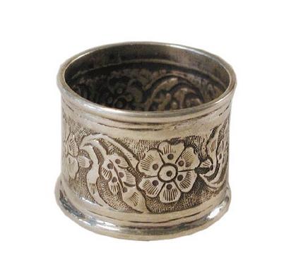 Set of 6 Napkin Rings - Hand Made Heavily Decorated Set of 6 Napkin Rings – 5.79 Oz (180 Grams) Approximate "Timeless Treasure" by Shakuntalam Silvercraft.