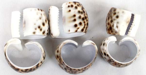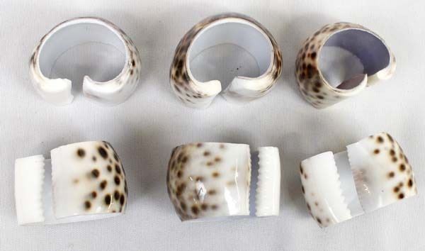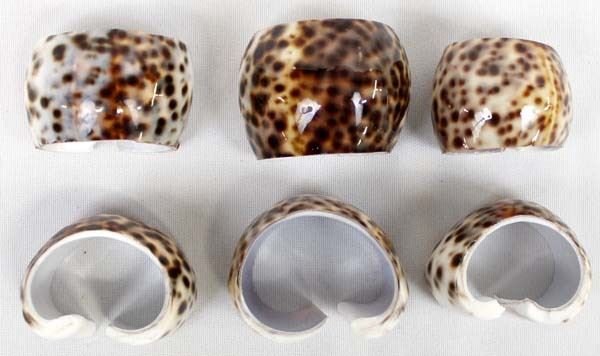 Set of 6 Natural Tiger Cowrie Shell Napkin Rings, measure 2''L